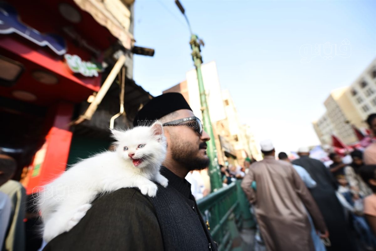 وصلت، منذ قليل، مسيرة حاشدة لمئات من الصوفيين إلى مسجد الإمام الحسين، احتفالًا بالمولد النبوي الشريف.