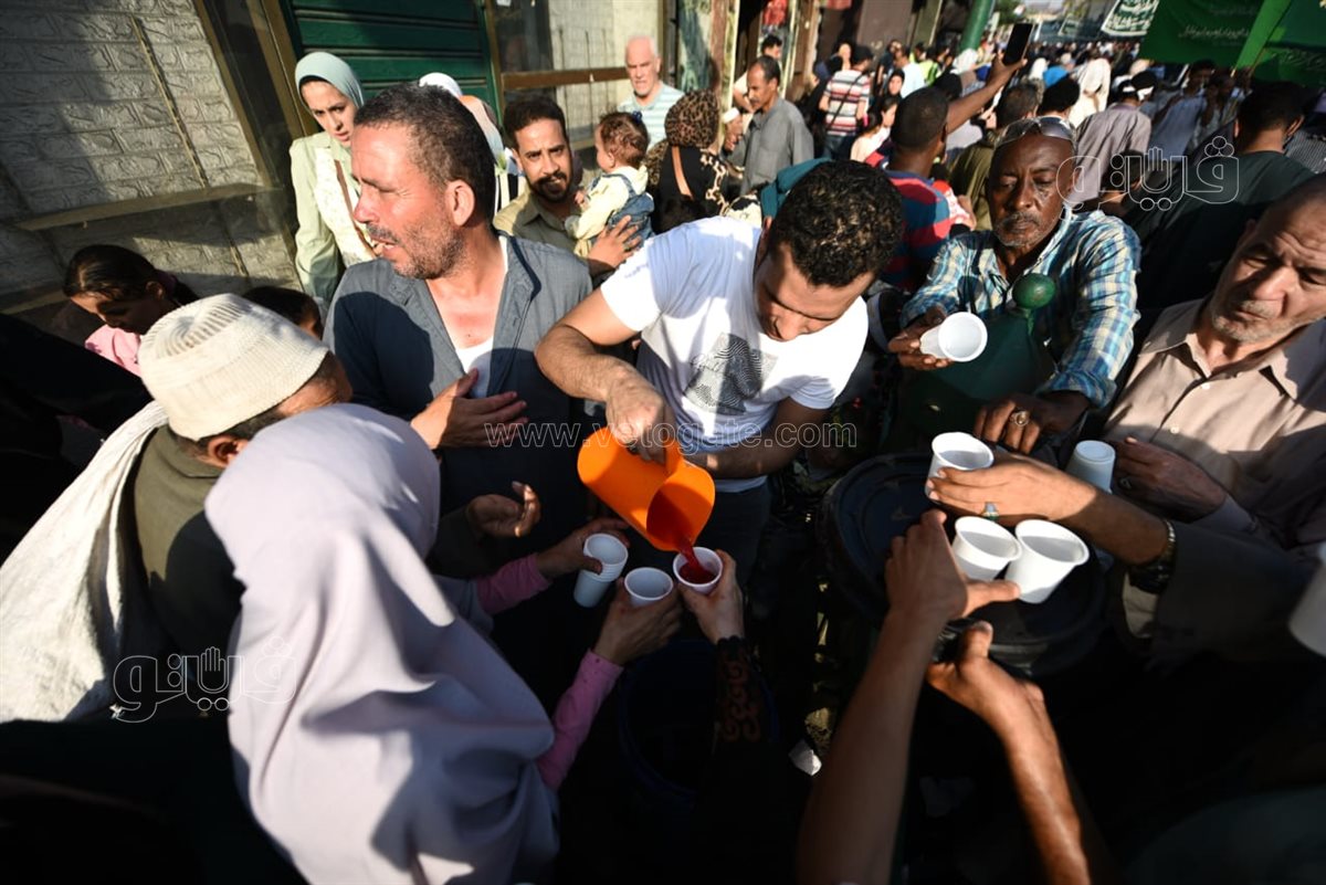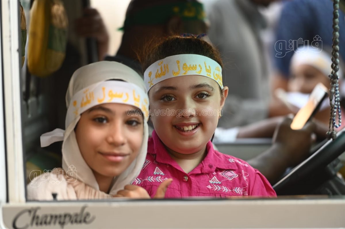 وعلى طول الطريق، كان المشاركون يوزعون "الشربات" على المارة والمحتفلين، احتفالا بـالمولد النبوي الشريف.