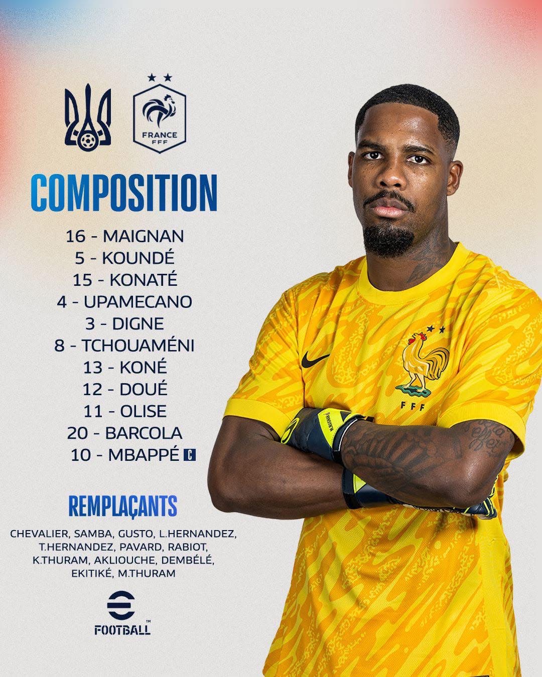 ويتواجد كيليان مبابي أساسيا أمام منتخب أوكرانيا.