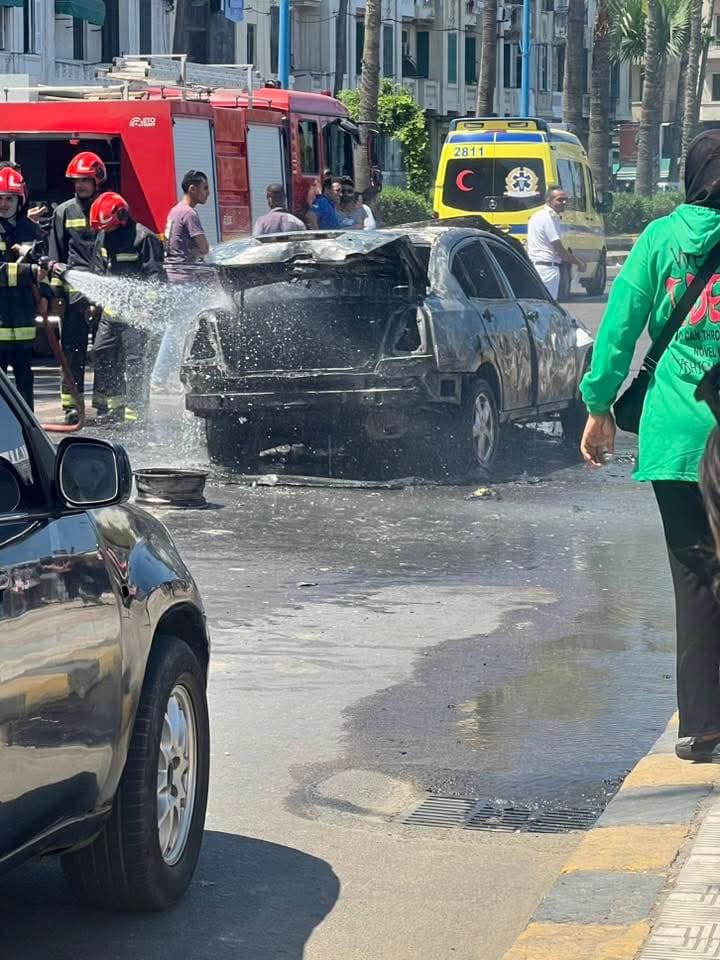 وكانت الأجهزة الأمنية بمديرية أمن الإسكندرية، قد تلقت إخطارا من ضباط شرطة النجدة، يفيد باندلاع حريق في سيارة ملاكي، بمنطقة بالكورنيش بدائرة قسم شرطة الجمرك، وعلى الفور تم الدفع بعدد من سيارات الإطفاء إلى موقع البلاغ، وسط فرض كردون أمني بمحيط المنطقة لمنع امتداد النيران وحماية المارة والمحال المجاورة.