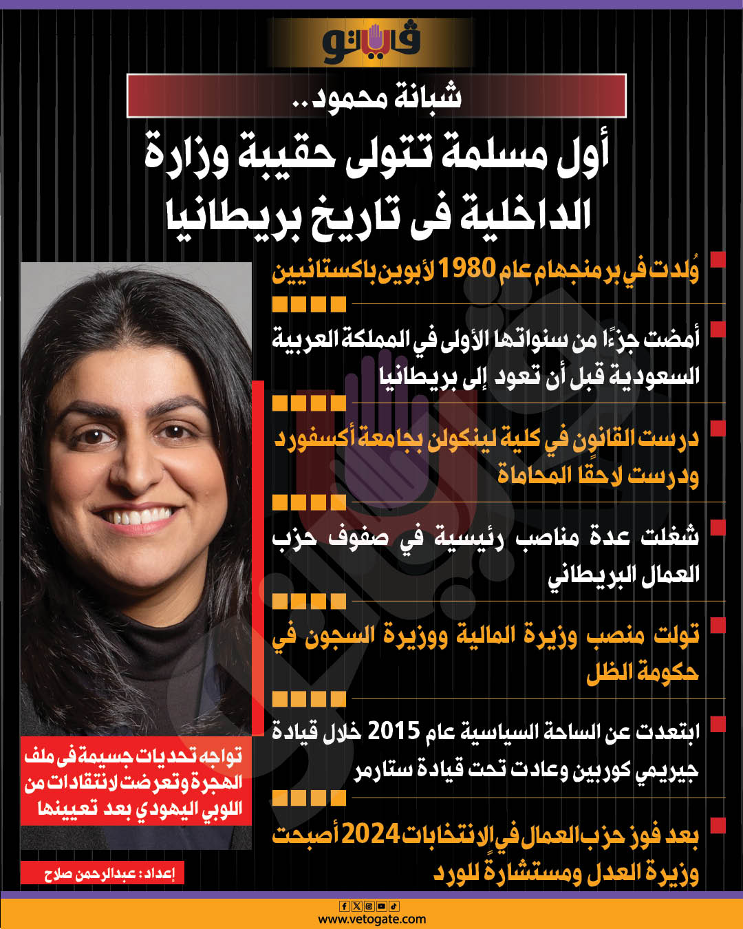 شبانة محمود.. أول مسلمة تتولى حقيبة وزارة الداخلية فى تاريخ بريطانيا (انفوجراف)