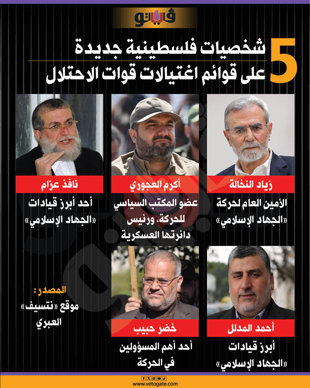 5 شخصيات فلسطينية جديدة على قوائم اغتيالات قوات الاحتلال (انفوجراف)