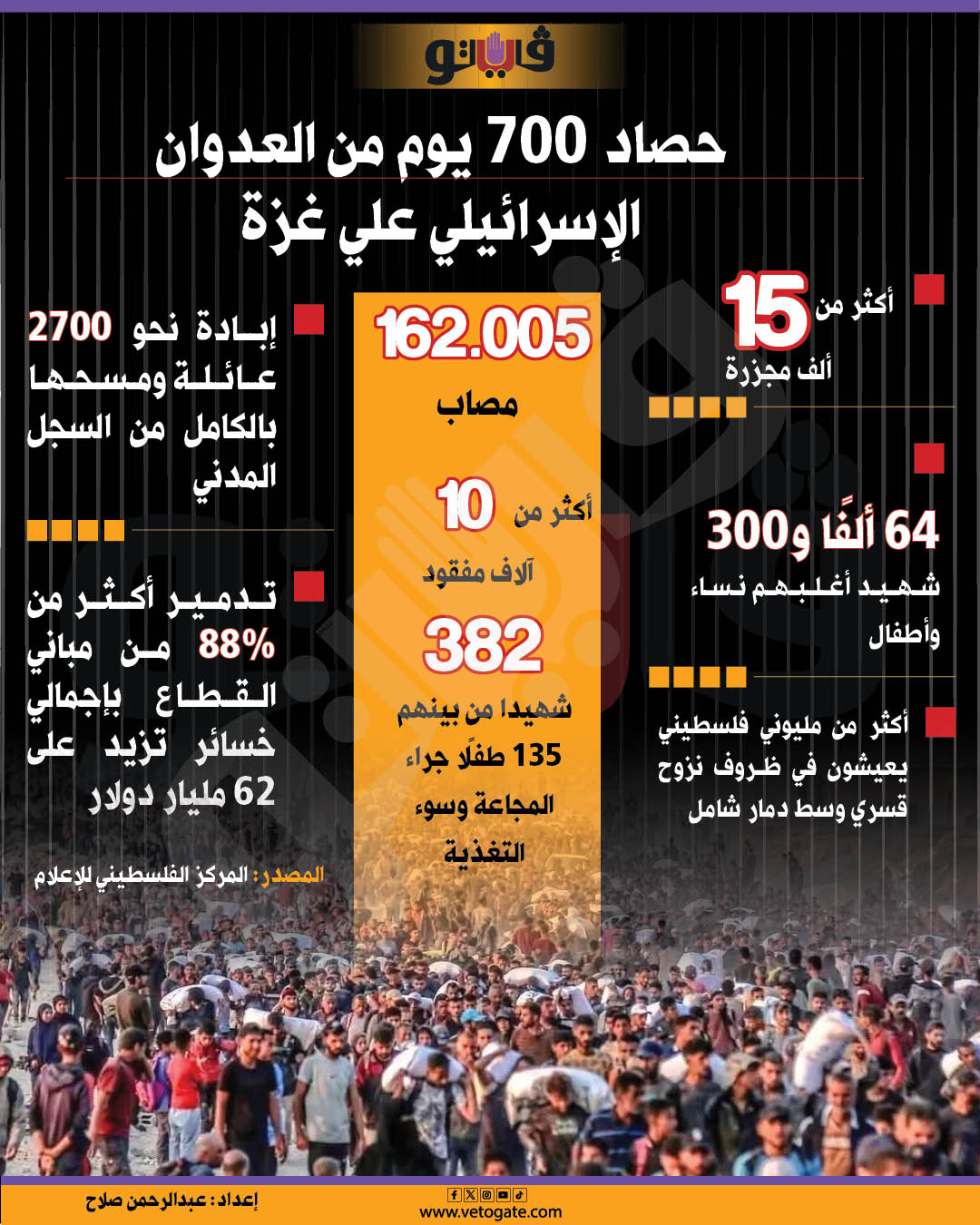حصاد 700 يوم من العدوان الإسرائيلي علي غزة (انفوجراف)