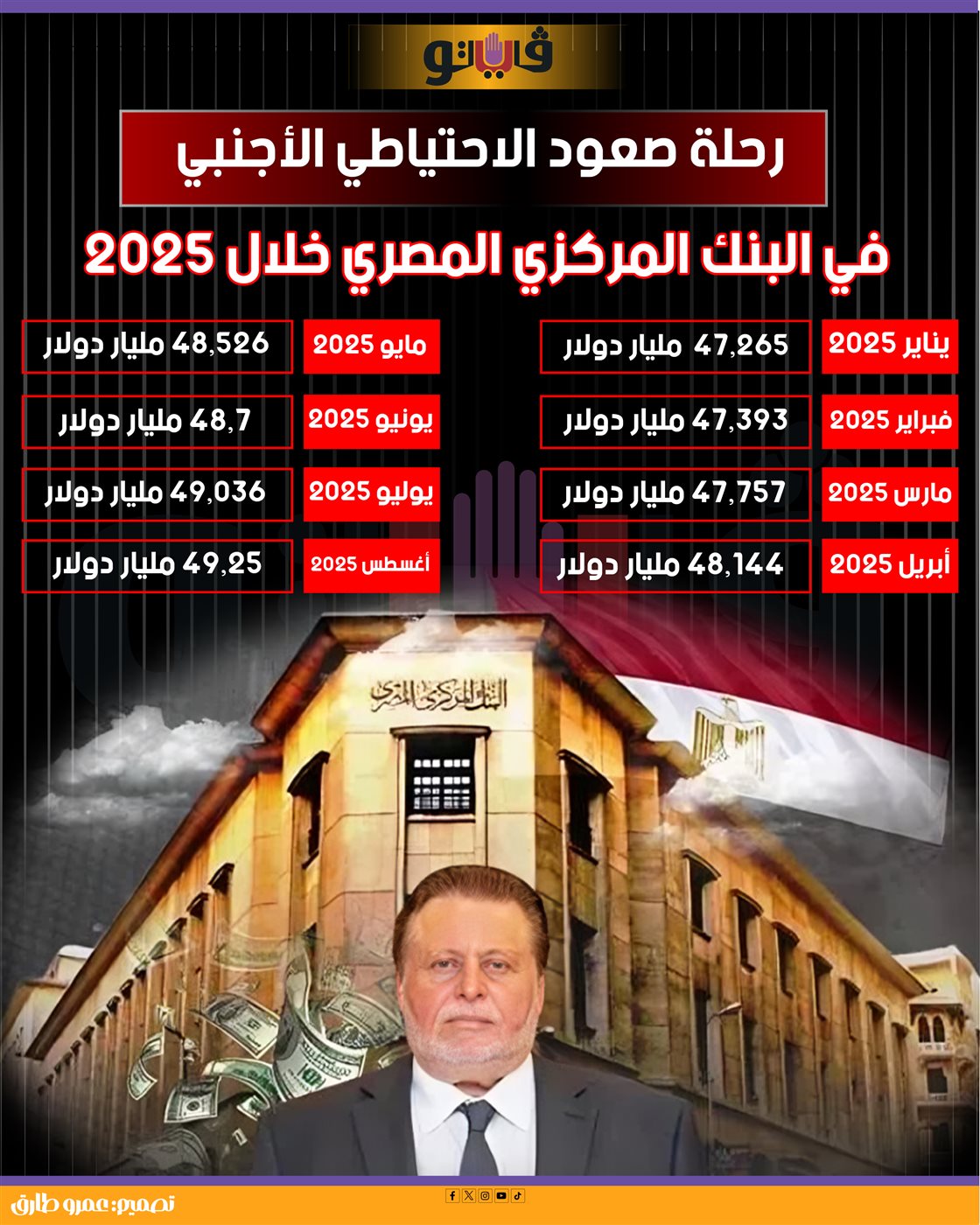 رحلة صعود الاحتياطي الأجنبي في البنك المركزي المصري خلال 2025 (إنفوجراف)