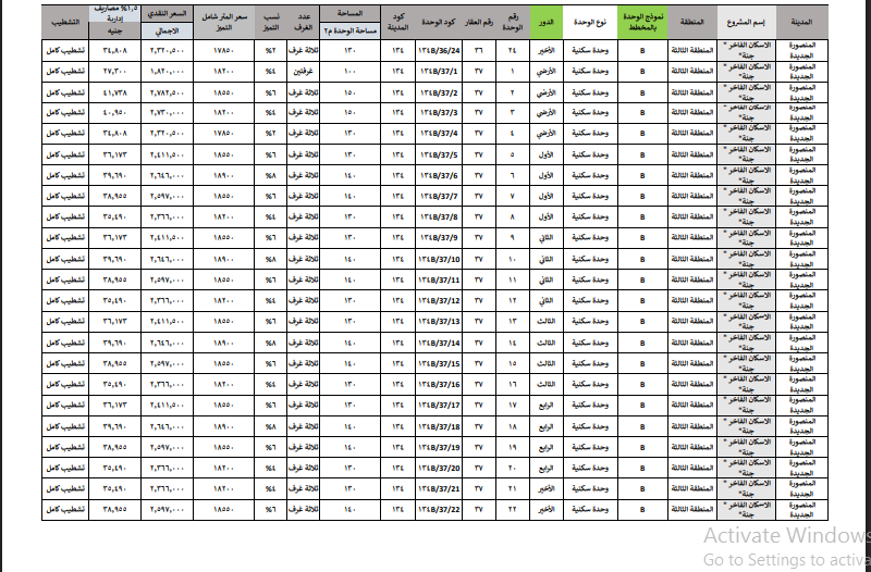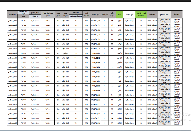وتراوحت أسعار الشقق ما بين 1.8 – 2.7 مليون جنيه بمساحات 100 – 150 مترا مربعا ويضم الطرح 192 شقة بقيمة إجمالية 384 مليون جنيه وقائمة أسعار الشقق كالتالي: