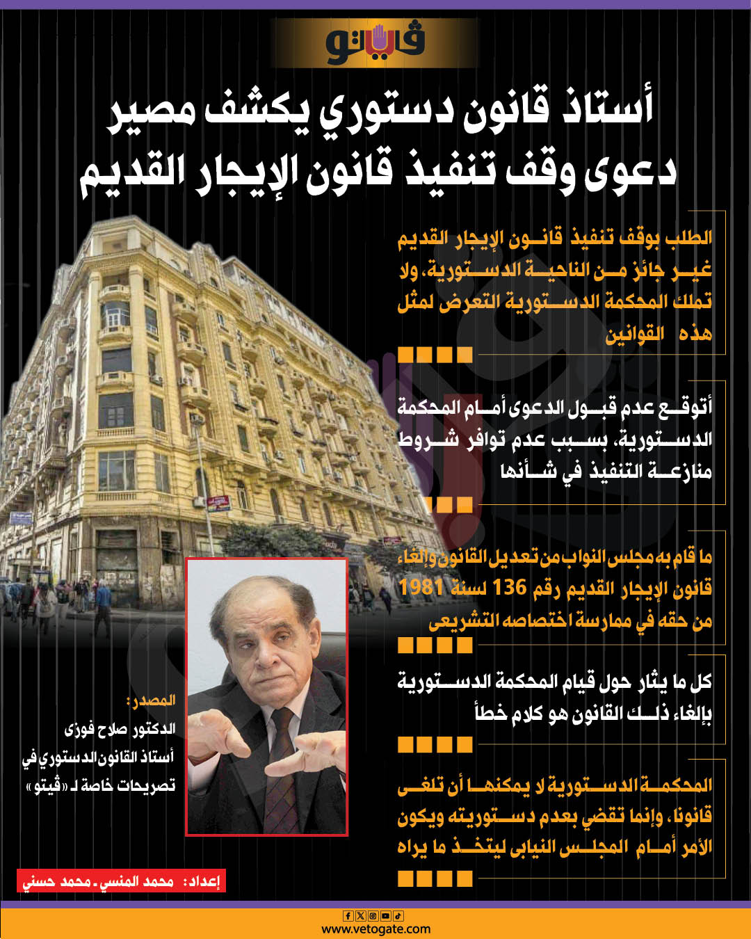 أستاذ قانون دستوري يكشف مصير دعوى وقف تنفيذ قانون الإيجار القديم (إنفوجراف)