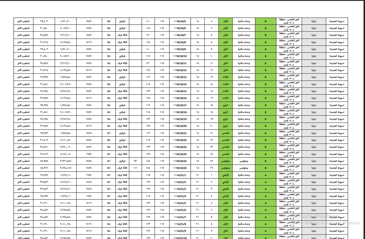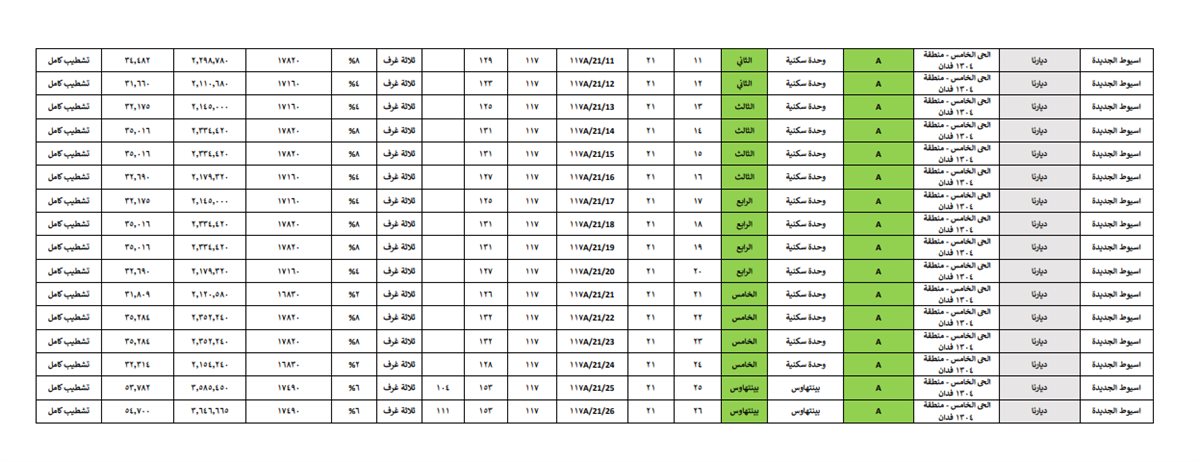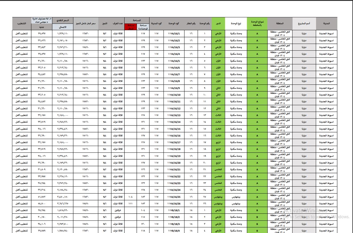 وننشر قائمة أسعار ومساحات الشقق المطروحة، كالتالي: