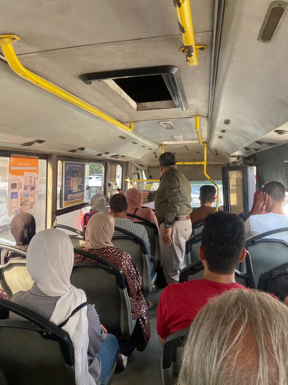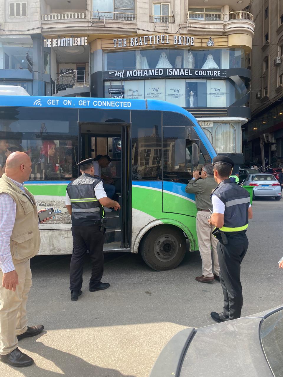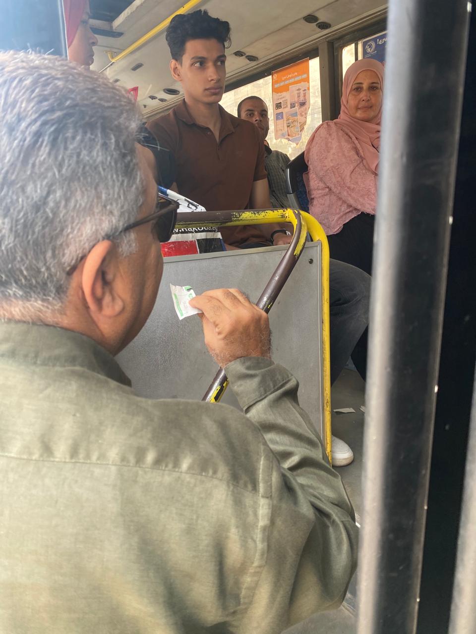 واستوقف المحافظ أحد باصات النقل الجماعي، وتحدث مع السائق والركاب للتأكد من تطبيق التعريفة الرسمية وعدم فرض أي زيادات غير قانونية، واستمع إلى شكاوى الركاب وآرائهم في منظومة النقل الجماعي.