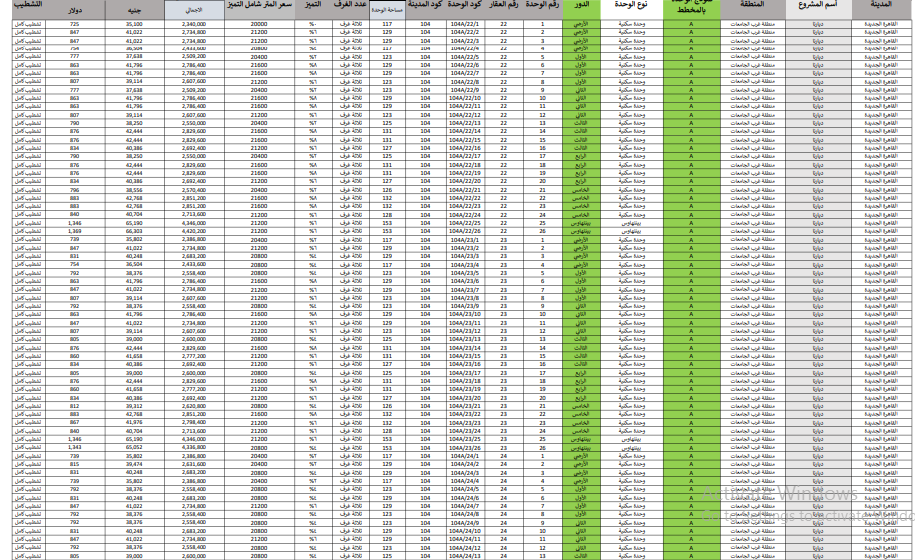 وننشر قائمة أسعار ومساحات الشقق المطروحة، كالتالي: