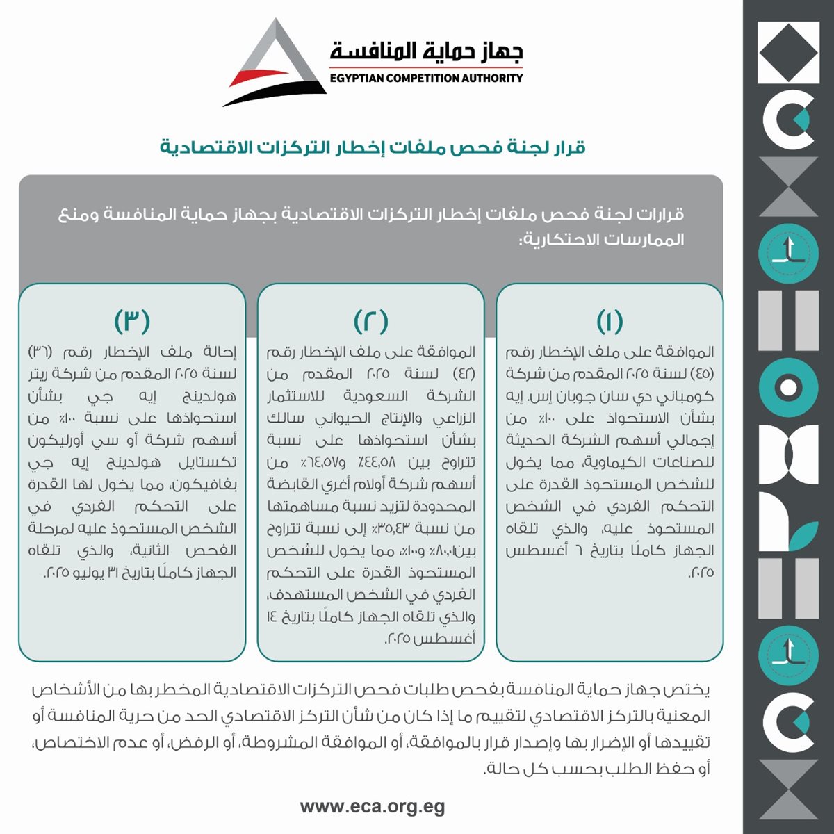 قرارات جديدة من لجنة فحص ملفات إخطار التركزات الاقتصادية بجهاز حماية المنافسة