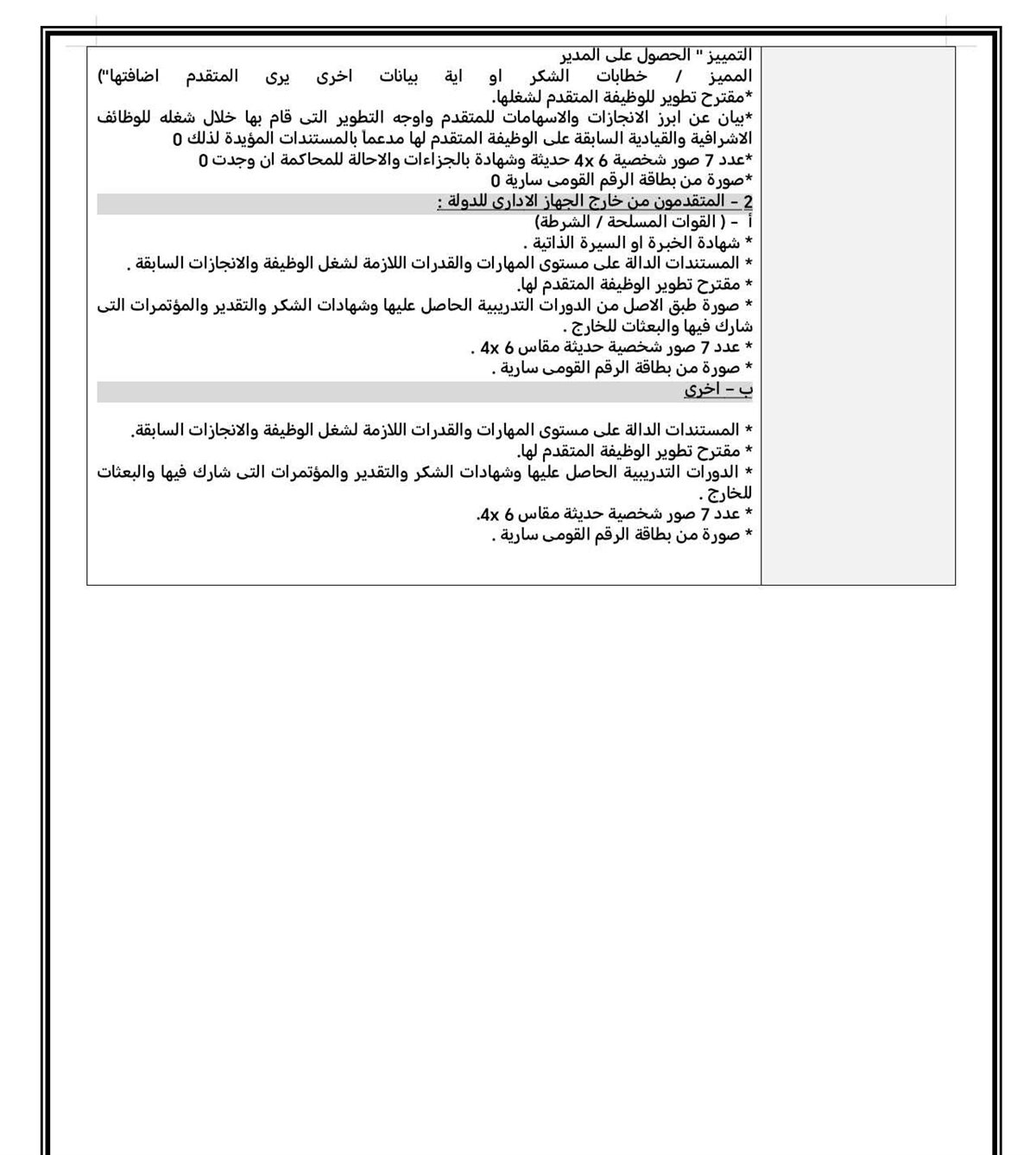قضاء مدة بينية لا تقل عن عام واحد على الأقل في وظيفة من المستوى الأدنى مباشرة، أو خبرة لا تقل عن 17 عامًا تتناسب مع طبيعة العمل.
