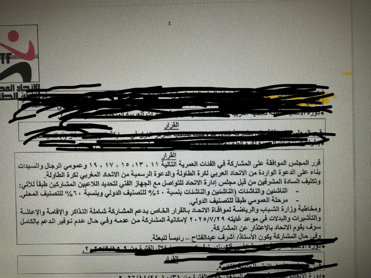 سبب استقالة نائب الرئيس وأمين الصندوق، ننفرد بنشر مخالفات عقد ملابس اتحاد تنس الطاولة