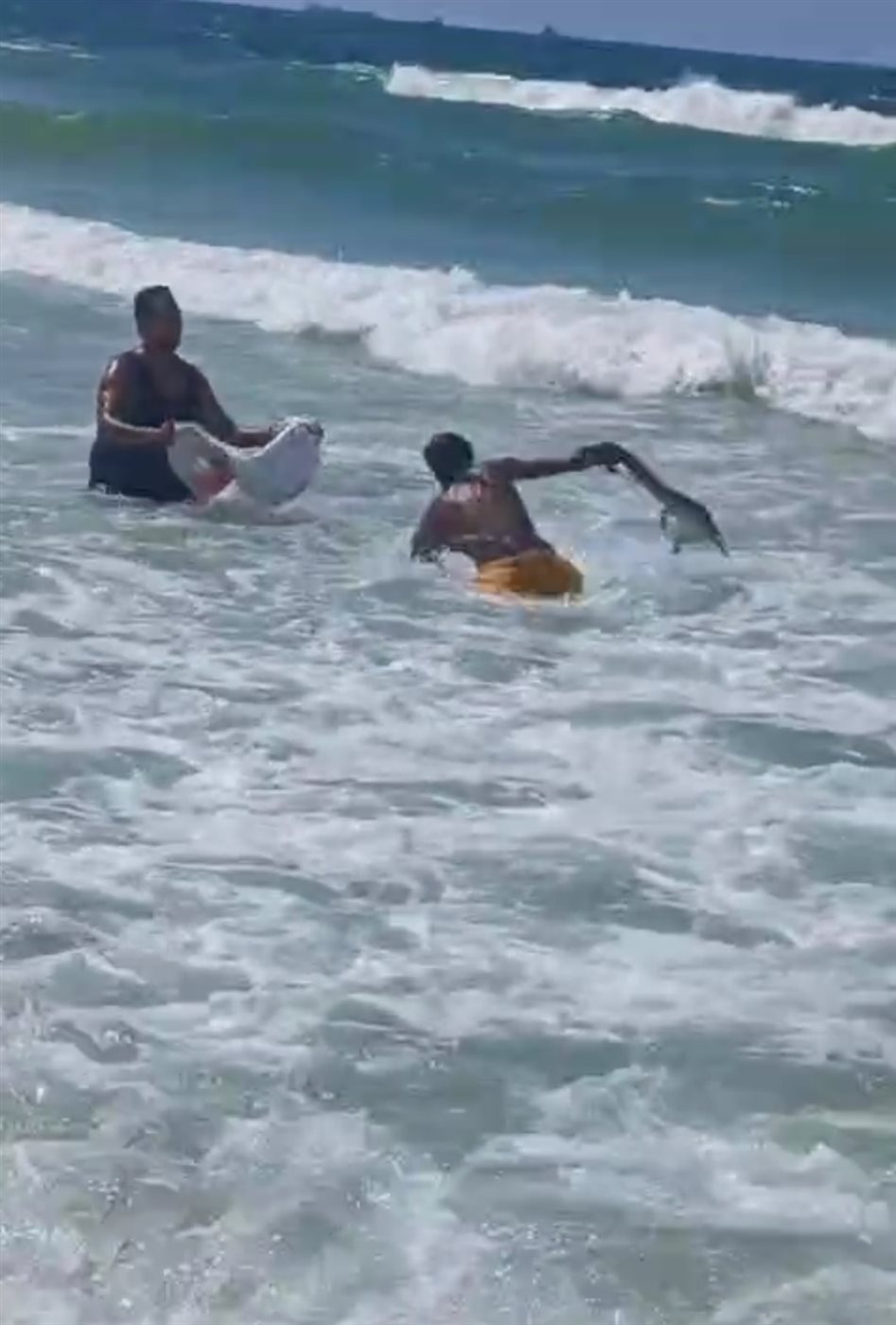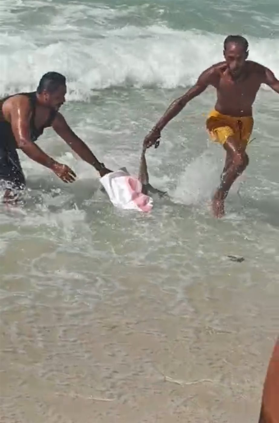 وهو الأمر الذي دفع منقذي وغطاسي الشاطئ للنزول فورا والإمساك به بعد عدة محاولات خاصة، وأنه كاد أن يعض أحدهم لكنه تمكن من الإمساك به ووضعه داخل جوال.