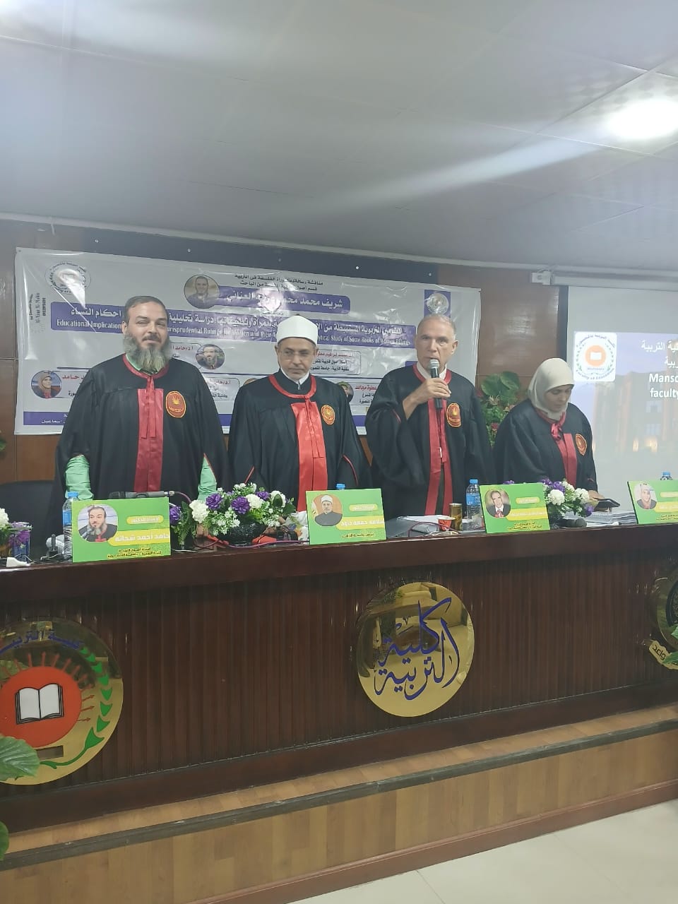 وكيل الكلية لشئون الدراسات العليا والبحوث، الدكتور أشرف السعيد أحمد رئيس قسم أصول التربية، ولفيف من أعضاء هيئة التدريس.