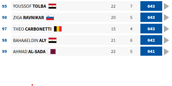 واحتل يوسف طلبة المركز الـ95 في الترتيب العام لبطولة العالم.