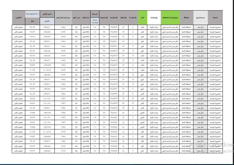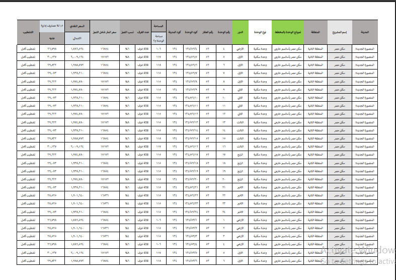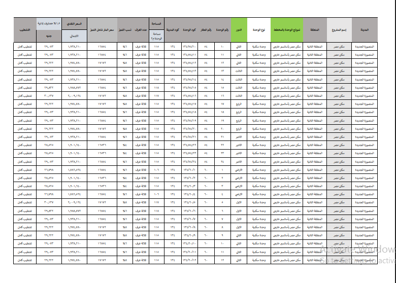 وننشر قائمة أسعار ومساحات الشقق المطروحة، كالتالي: