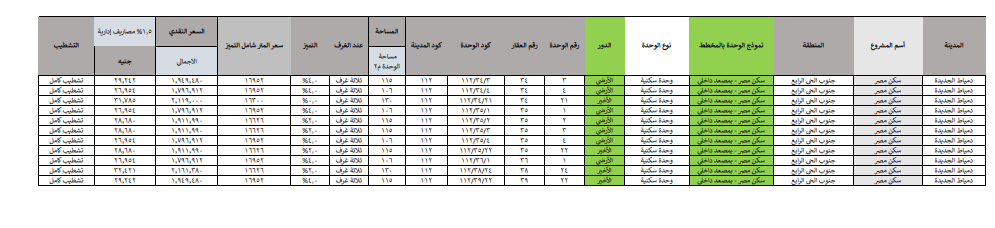 وننشر قائمة أسعار ومساحات الشقق المطروحة، كالتالي: