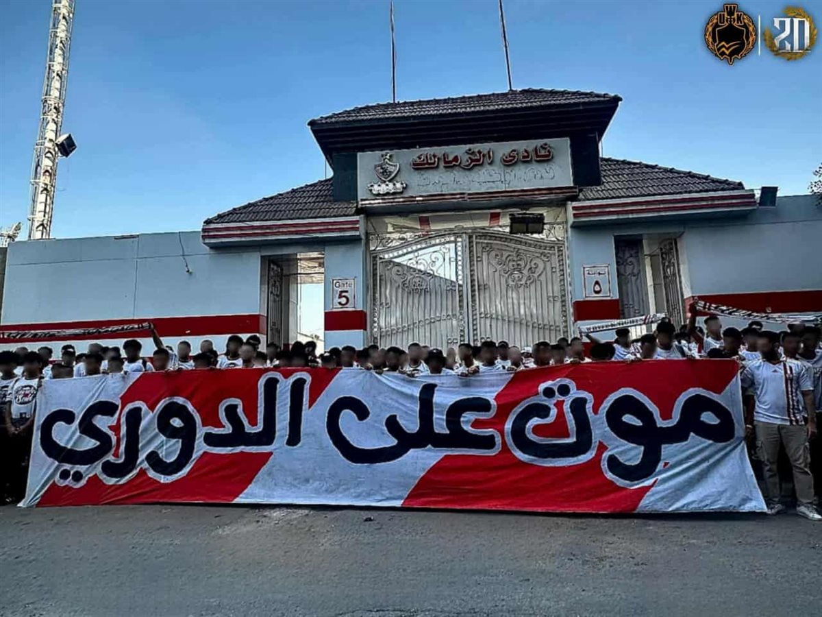 ورفعت الجماهير بنر من أمام مقر النادي مكتوب عليها: موت على الدوري.