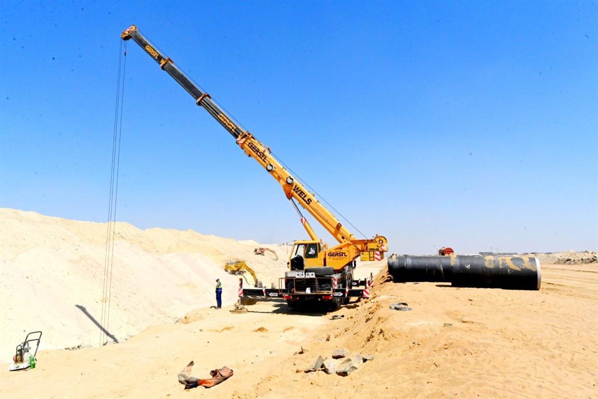 كما أنه جارٍ تنفيذ المرحلة الأولى من خزان المياه والرافع بسعة ٣٦٠٠٠ متر مكعب، وجارٍ تنفيذ أعمال شبكات الطرق والمرافق بالمنطقة، وتشمل: شبكات المياه أقطار من ۲٠٠ مم حتي ۱۲۰۰ مم بإجمالي أطوال ٩٠ كم، وشبكات الصرف أقطار من ۲۰۰ مم حتي ١٤٠٠ مم بإجمالي أطوال ١١٣ كم أعماق من ١.٥م حتى ١٠.٥م، وشبكة الري أقطار من ٢٠٠ مم حتى ۱۰۰۰ مم بإجمالي أطوال ٨٨ كم، وشبكات الطرق بطول ٩٠ كم، ١٠ كم مرحلة أولى ويتم التحضير للمرحلة الثانية بإجمالي ١٥ كم.