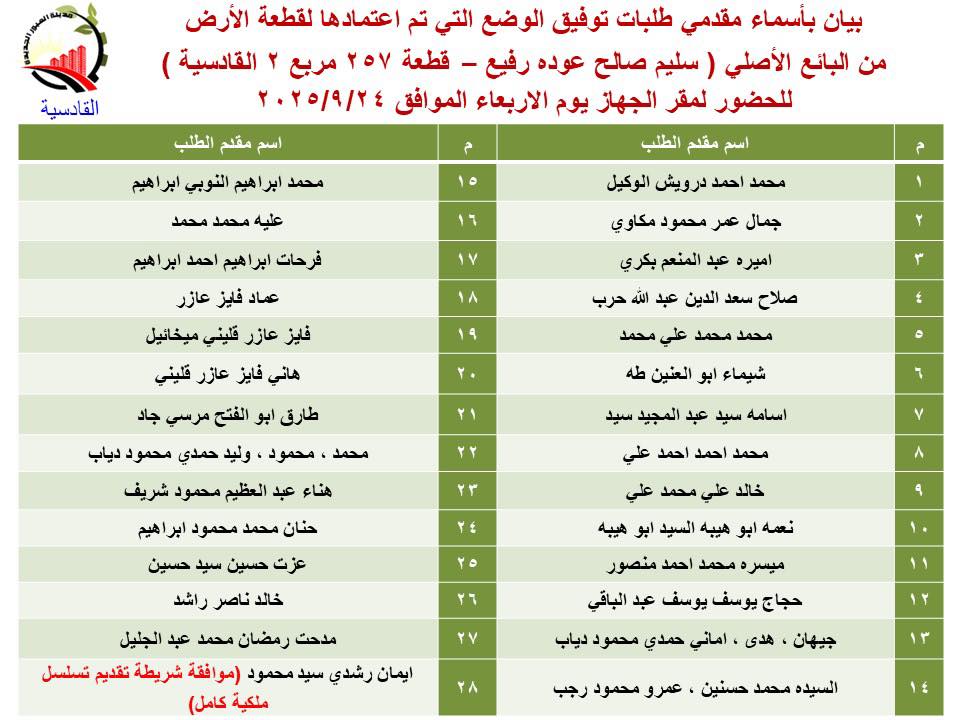 تقنين دفعة جديدة من أراضي المواطنين بالعبور الجديدة