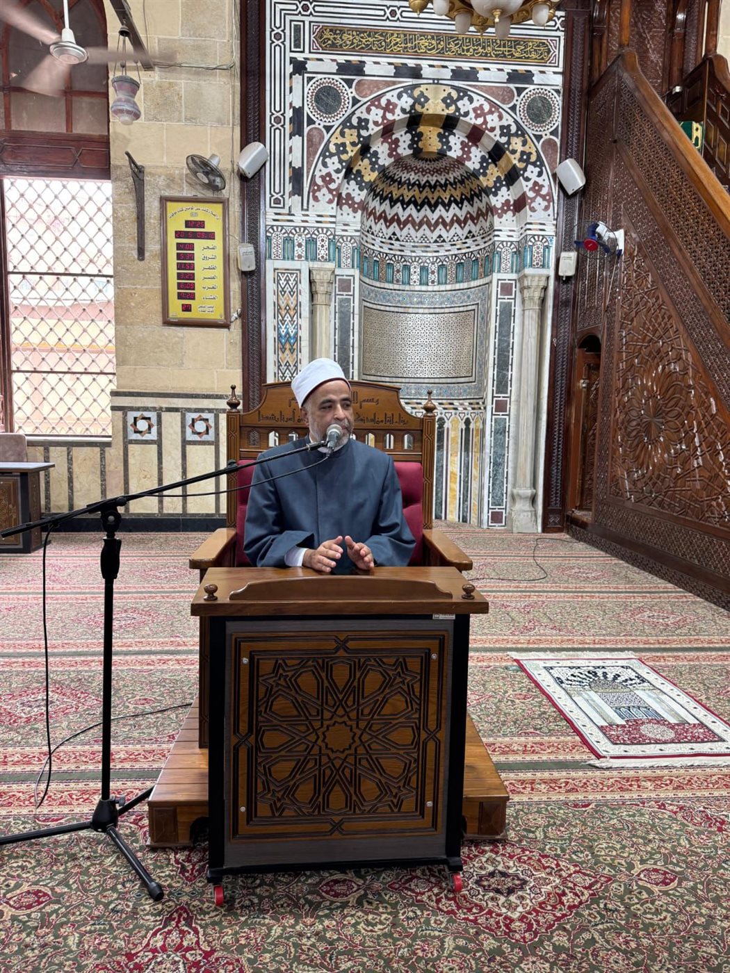 وفي مسجد الحاج علي غريب بالجيزة، تناول الشيخ أحمد صالح، أمين الفتوى بدار الإفتاء، فضل صلاة الجماعة وأحكامها، ورد على تساؤلات حول صلاة الفجر في القطار، وفرائض الغسل، ومعنى فرض الكفاية، وأحكام قضاء الفوائت والجهر في الصلوات السرية.