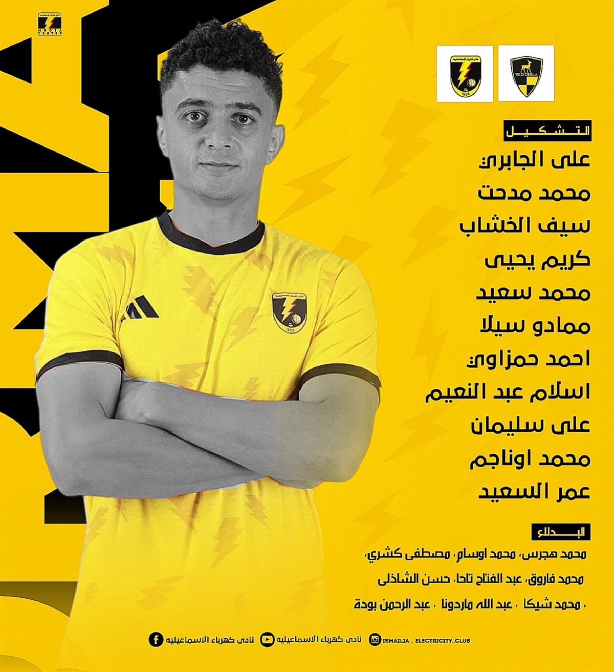 دخل فريق كهرباء الإسماعيلية مباراته أمام وادي دجلة بتشكيل مكون من: