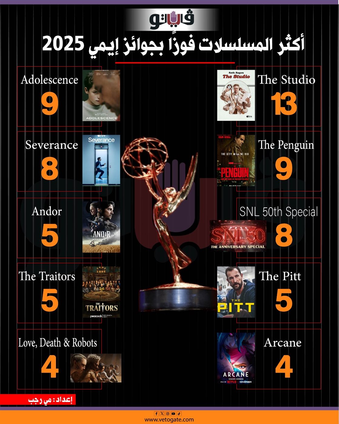 أكثر المسلسلات فوزًا بجوائز إيمي 2025 (إنفوجراف)