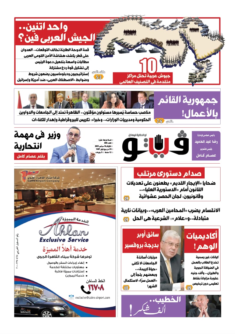فيتو في عددها الجديد.. واحد اتنين الجيش العربي فين ؟..مطالبات واسعة بتفعيل دعوة الرئيس إلى تشكيل قوة ردع مشتركة