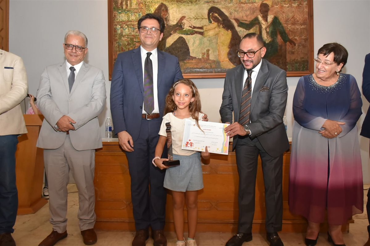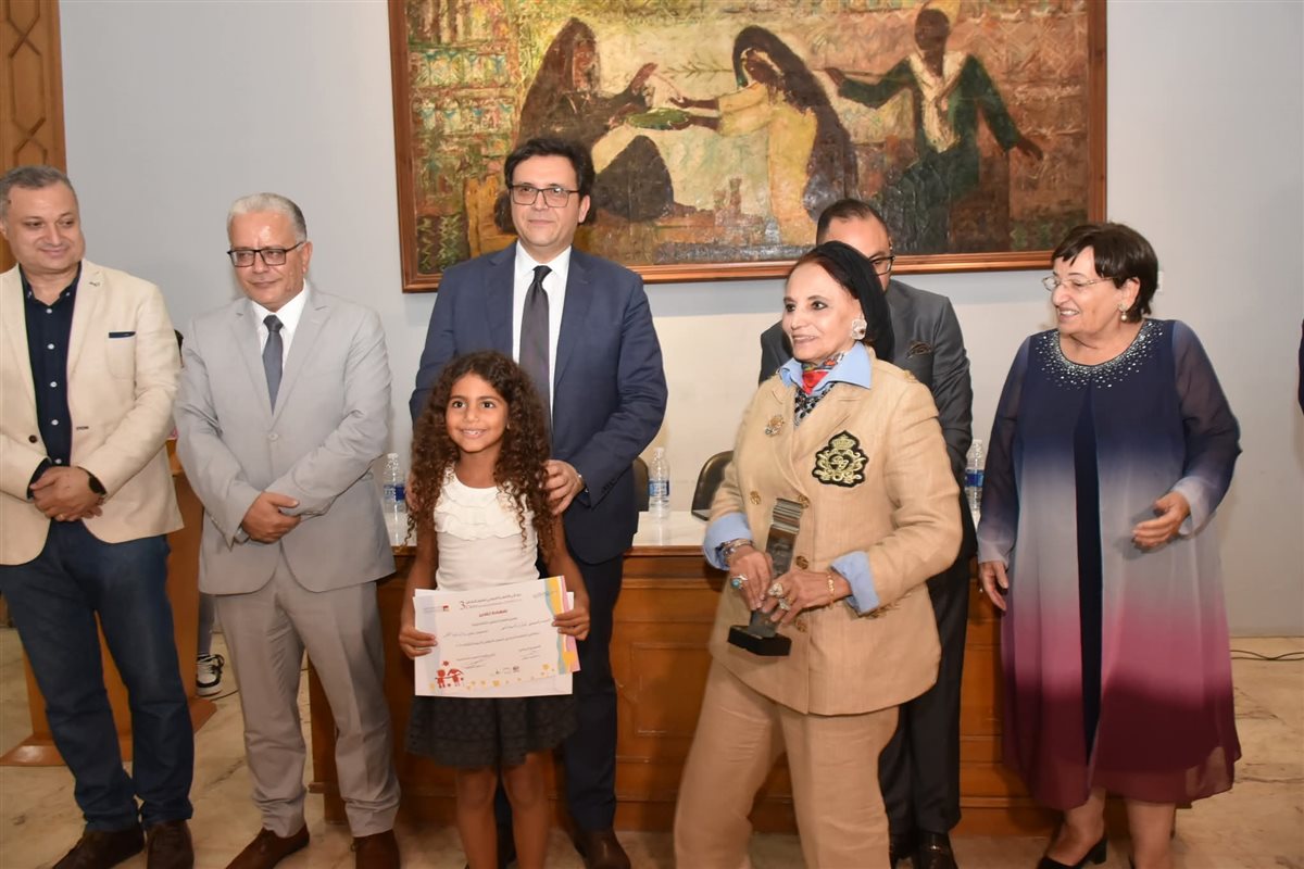 أولًا: جائزة لجنة التحكيم لكل من: العمل الجماعي (مرسم الفنان الصغير) بنادي سبورتينج بالإسكندرية،- إياد زيشيان (الهند)".