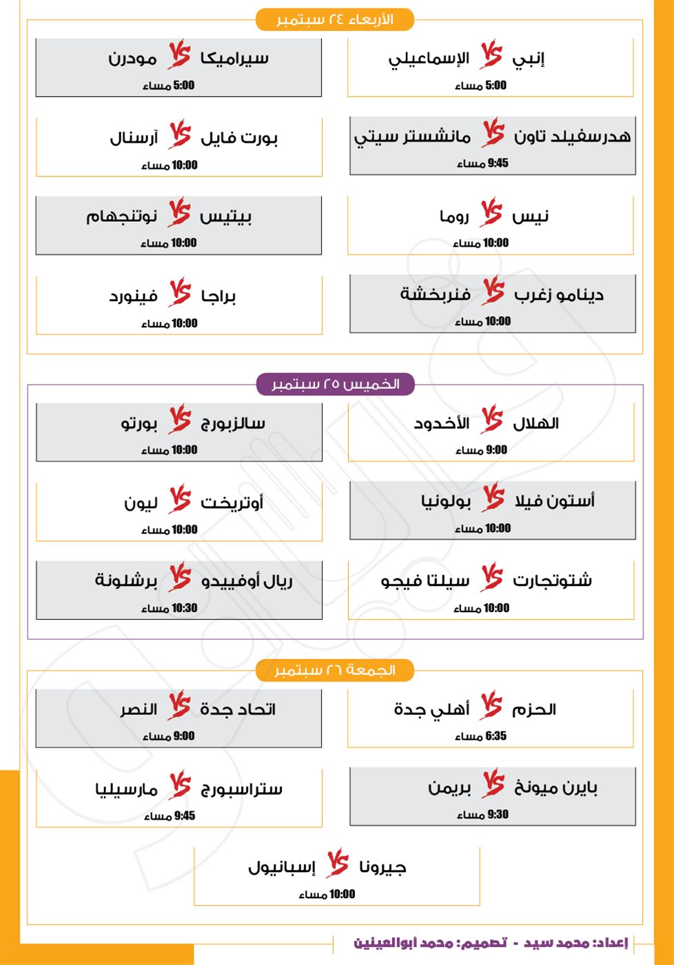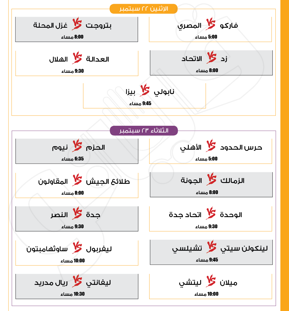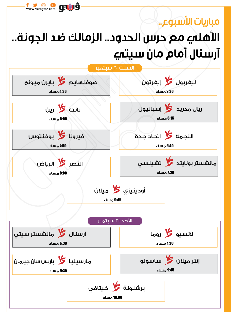 مباريات الأسبوع.. الأهلي مع حرس الحدود.. الزمالك ضد الجونة.. آرسنال أمام مان سيتي (إنفوجراف)