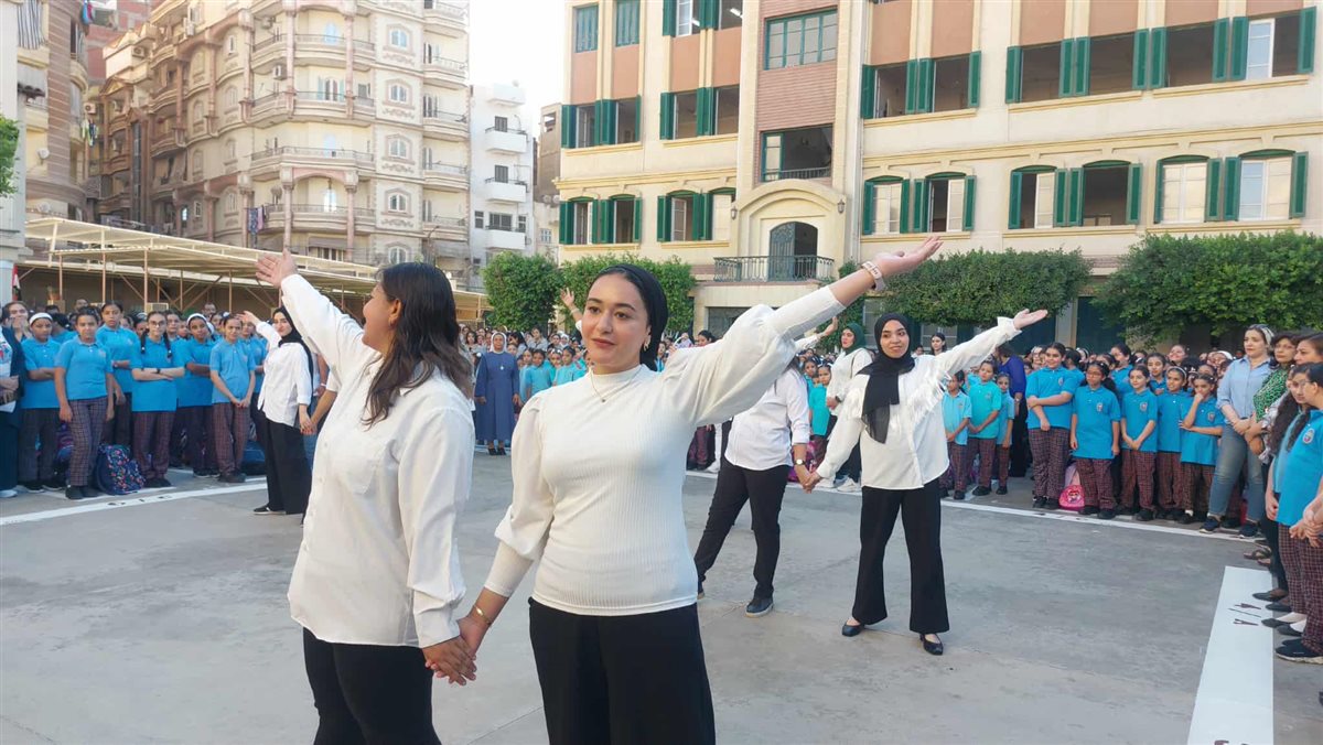 وتوافد الطلاب علي المدرسة وتم استقبالهم بالشكولاته علي الابواب، وبحضور طابور الصباح وهيئة المدرسة قدم الطلاب الإذاعة المدرسية وقدم مدرسين رسالة ترحيب بالطلاب.