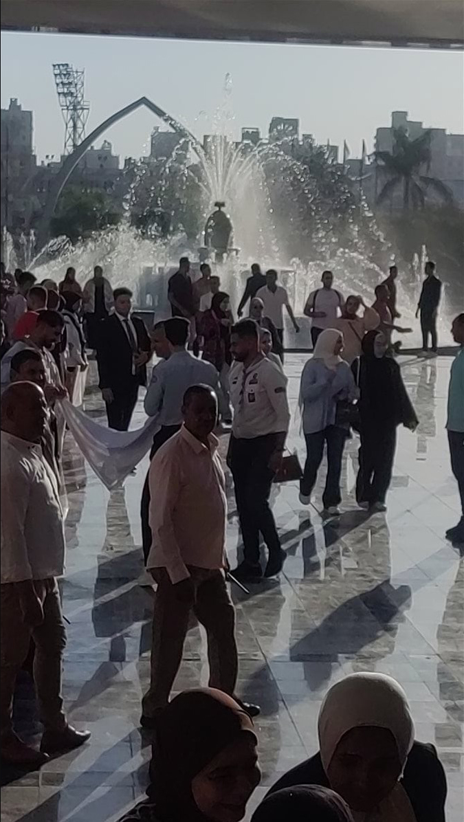 من أمام النافورة، مراسم تحية العلم في أول يوم دراسة بجامعة أسيوط (فيديو)