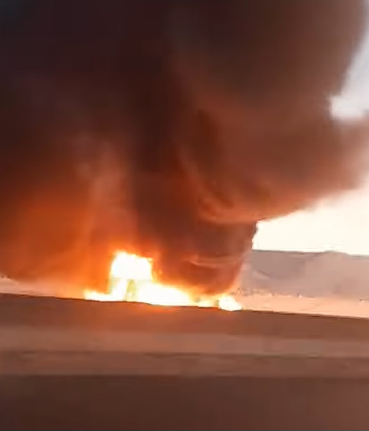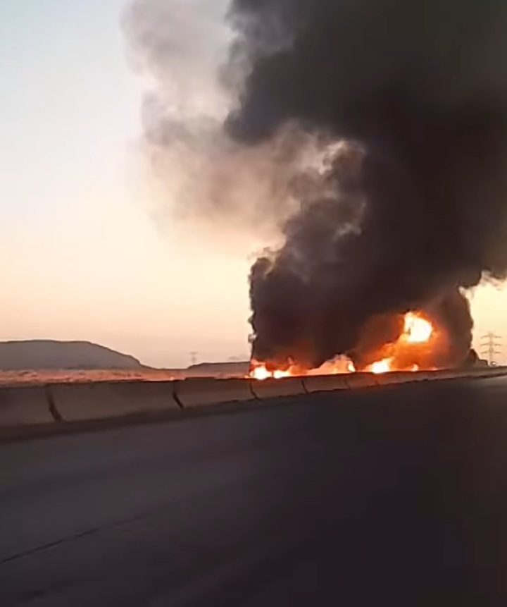 اندلاع حريق كبير تسبب في إغلاق جزئي للطريق المتجه إلى العاصمة.