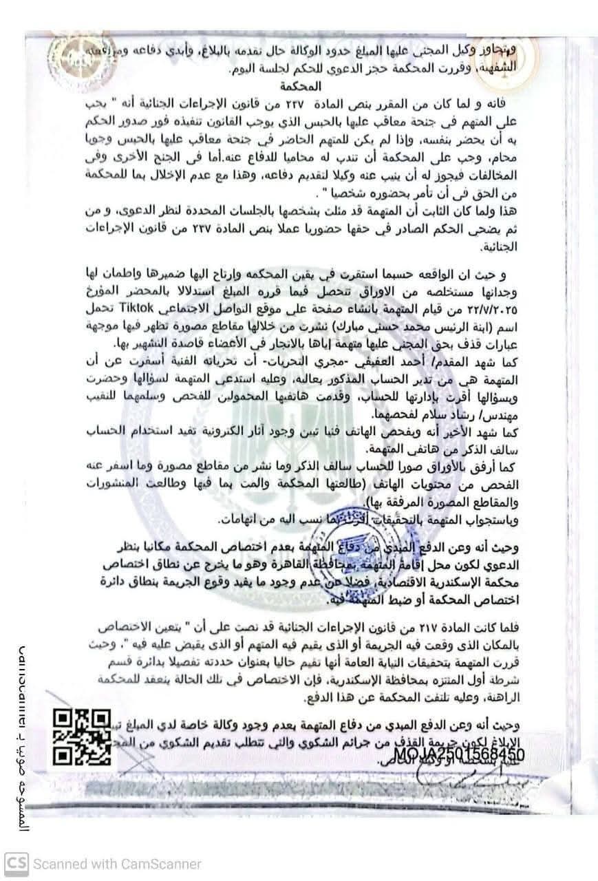 اقتصادية الإسكندرية تكشف حيثيات الحكم على ابنة مبارك المزعومة
