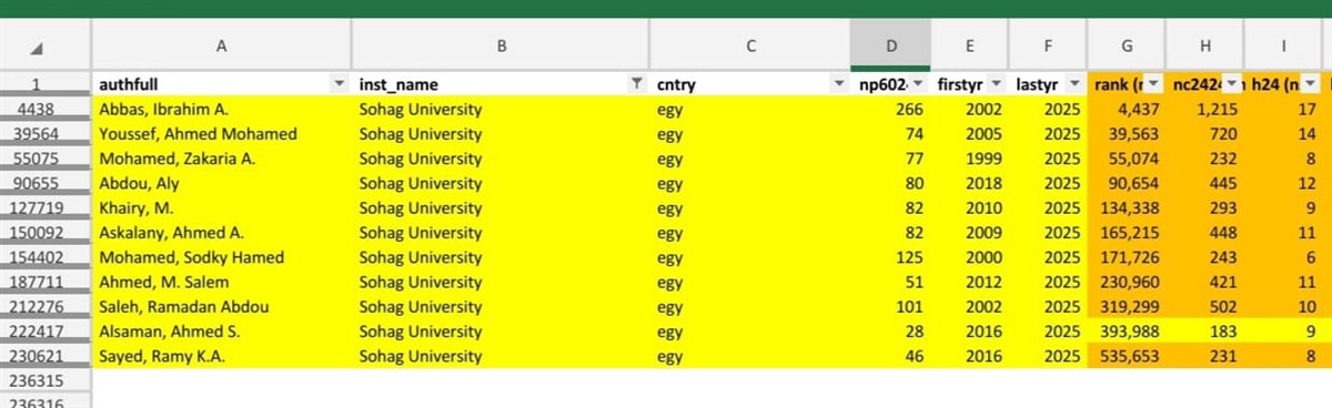 أعلن الدكتور حسان النعماني رئيس جامعة سوهاج عن تحقيق الجامعة إنجازًا علميًا جديدًا بدخول 12 عالمًا من أعضاء هيئة التدريس، ضمن قائمة أعلى 2% من العلماء الأكثر تأثيرًا على مستوى العالم، وفقًا لتصنيف جامعة ستانفورد الأمريكية لعام 2025، وذلك من بين 1106 علماء مصريين أدرجوا في هذه القائمة المرموقة.