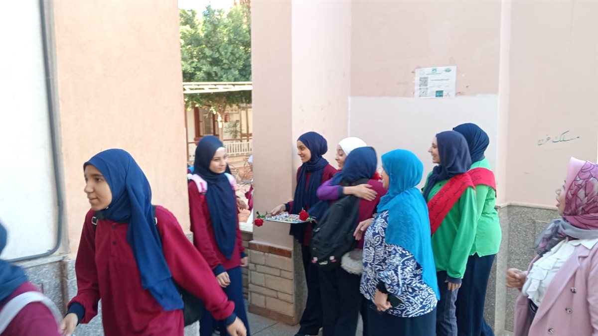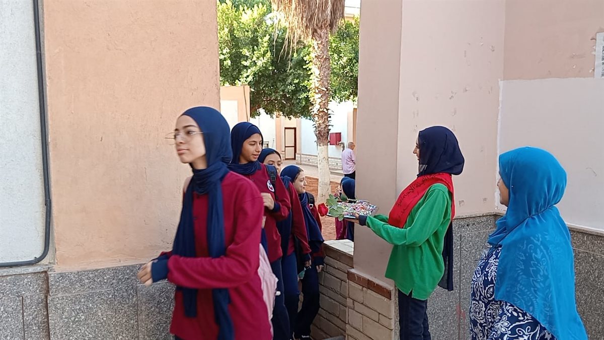 توزيع الورود والشيكولاتة على الطلاب بمدارس أسيوط (فيديو وصور)