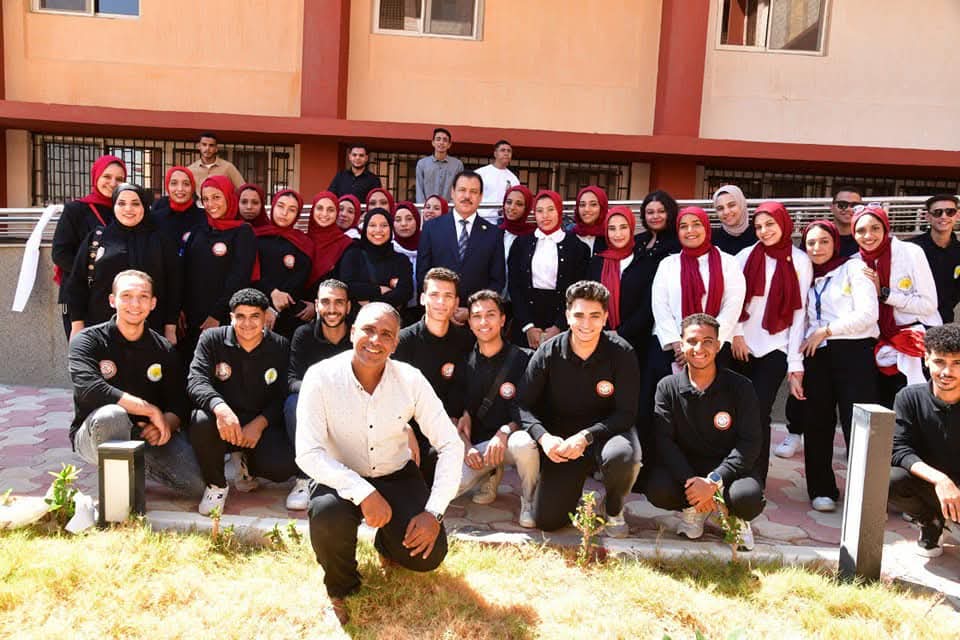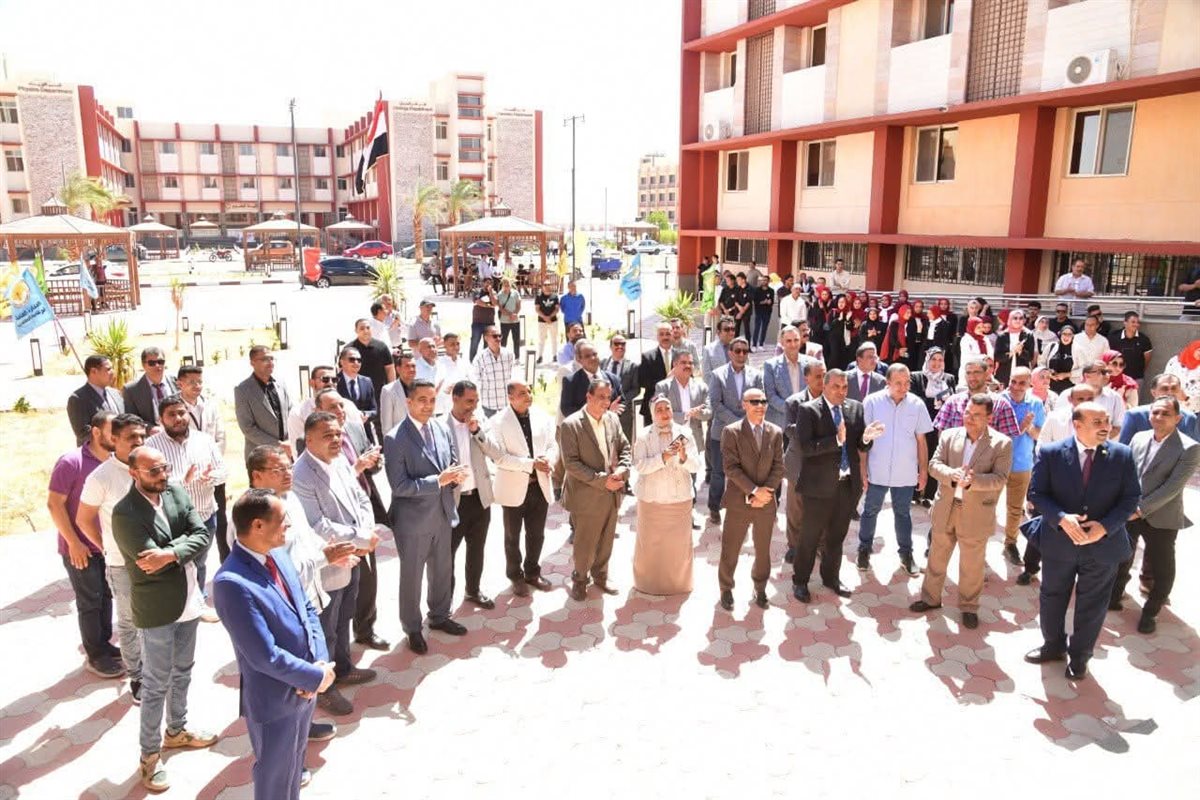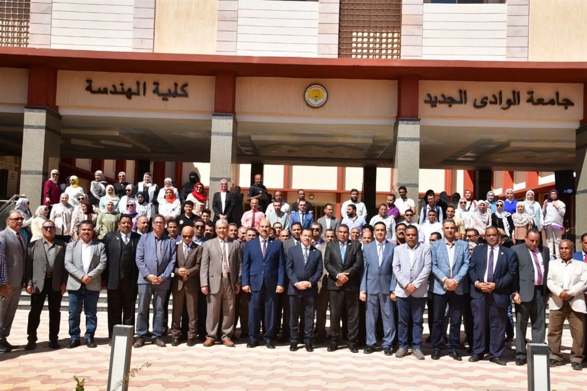 رئيس جامعة الوادي الجديد يلتقط الصور مع الطلاب في أول أيام الدراسة
