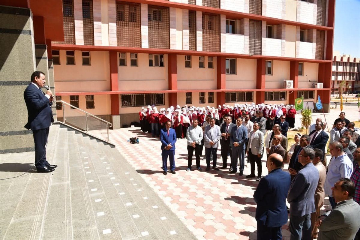 وقدم الدكتور عبد العزيز طنطاوى رئيس الجامعة خلال مراسم تحية العلم التهنئة للطلاب الجدد، والقدامي، وأعضاء هيئة التدريس والعاملين بالجامعة، بمناسبة بدء العام الجامعى الجديد.