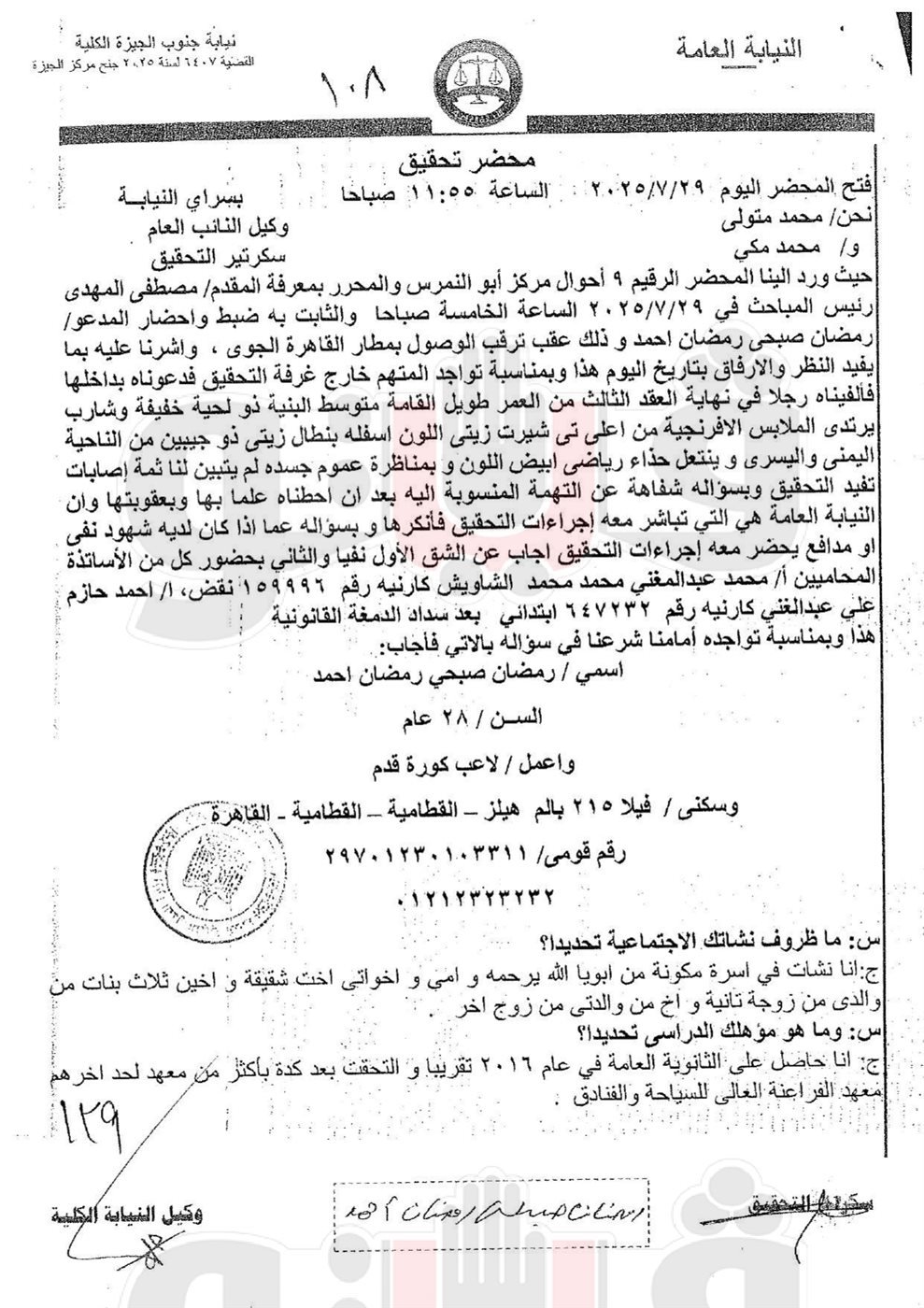 أقوال رمضان صبحي في تحقيقات اتهامه بالتزوير