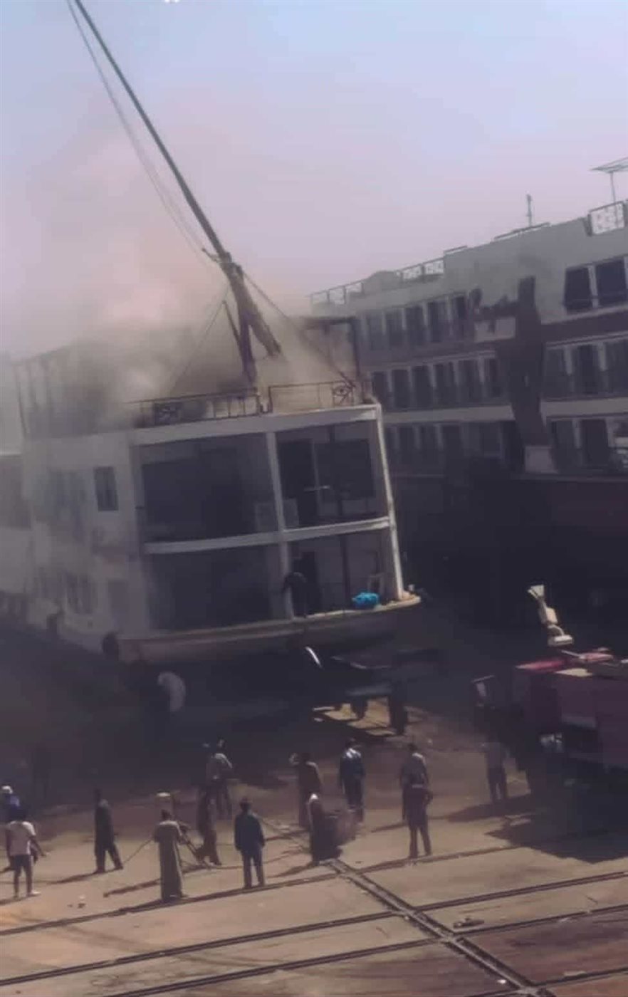 اشتعال النيران في مركب سياحي بمرسى إدفو (صور)