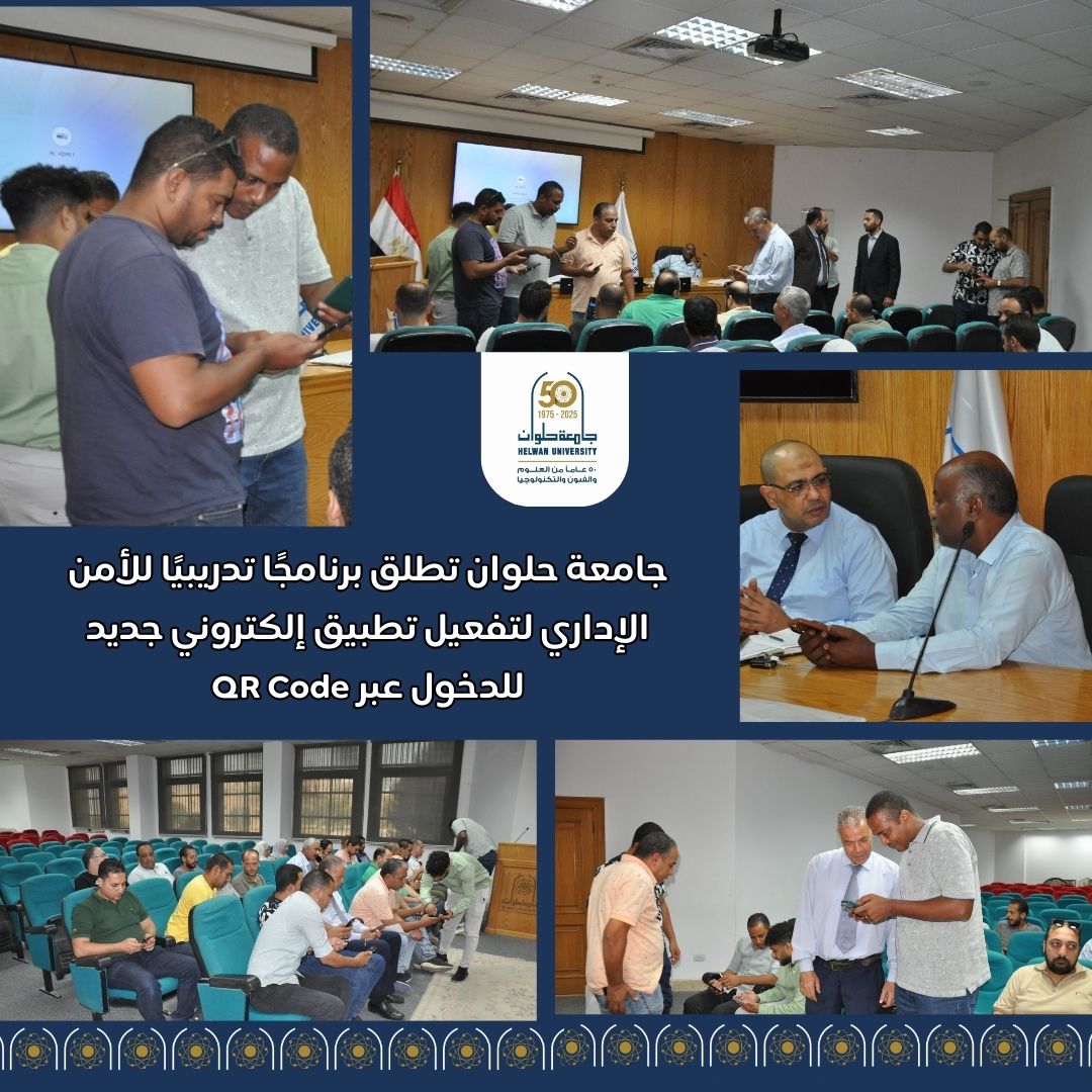أطلقت جامعة حلوان برنامجًا تدريبيًا متخصصًا لأفراد الأمن الإداري، يهدف إلى تأهيلهم لاستخدام تطبيق إلكتروني جديد يُمكّن الطلاب من الدخول إلى الحرم الجامعي عبر رمز الاستجابة السريعة (QR Code).