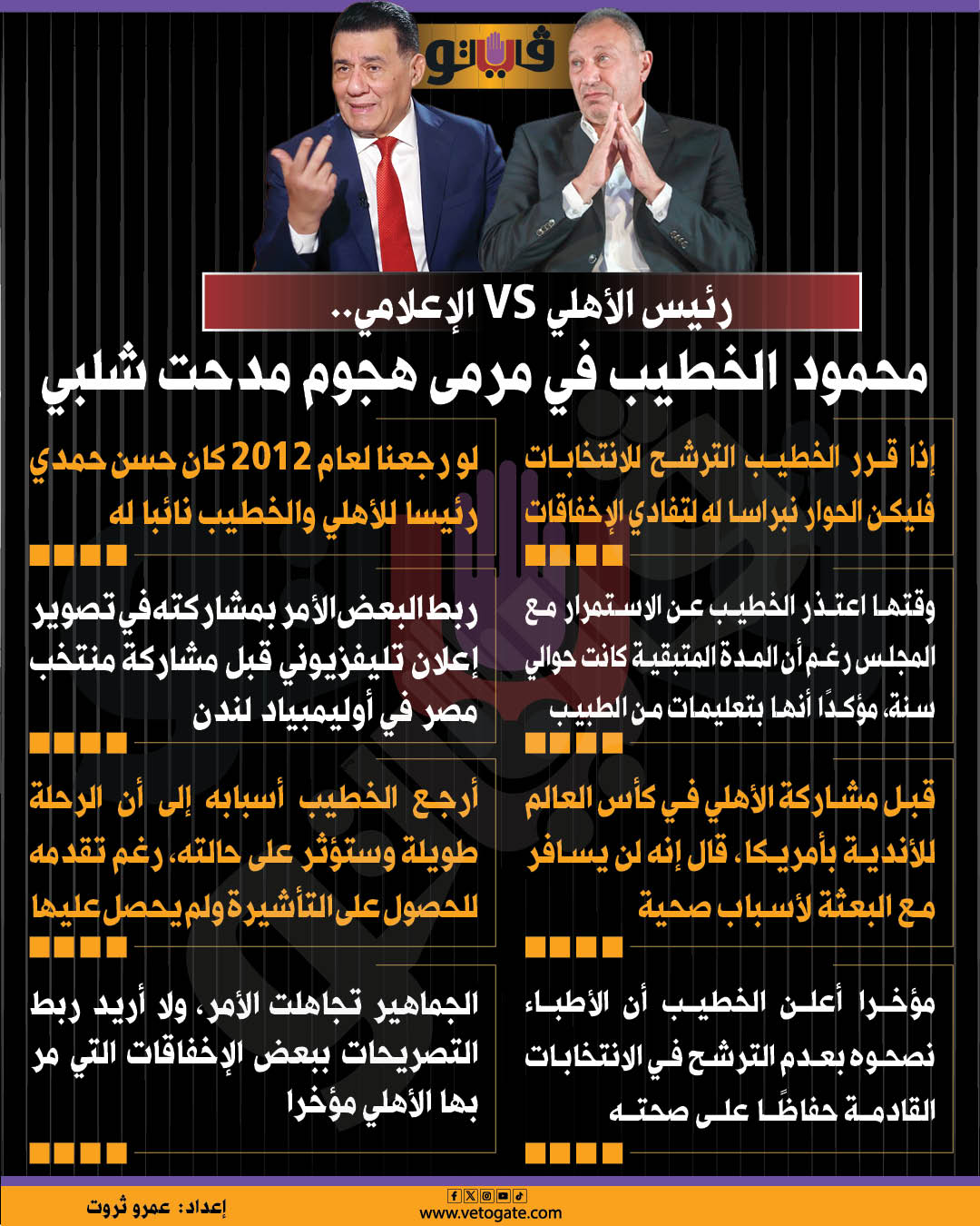 رئيس الأهلي VS الإعلامي.. محمود الخطيب في مرمى هجوم مدحت شلبي (إنفوجراف)