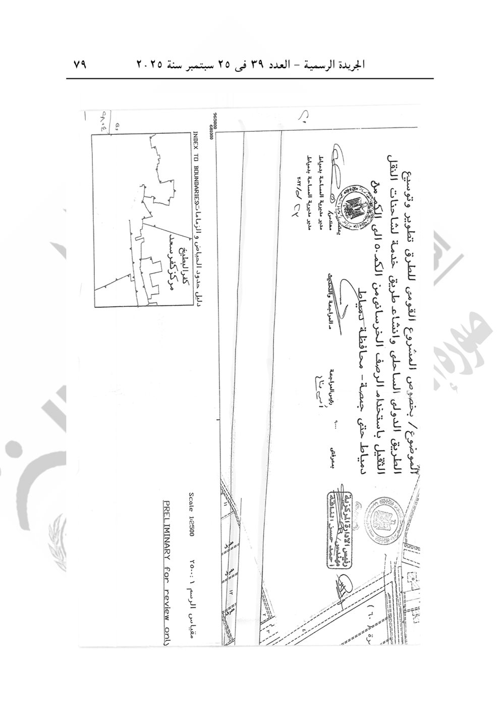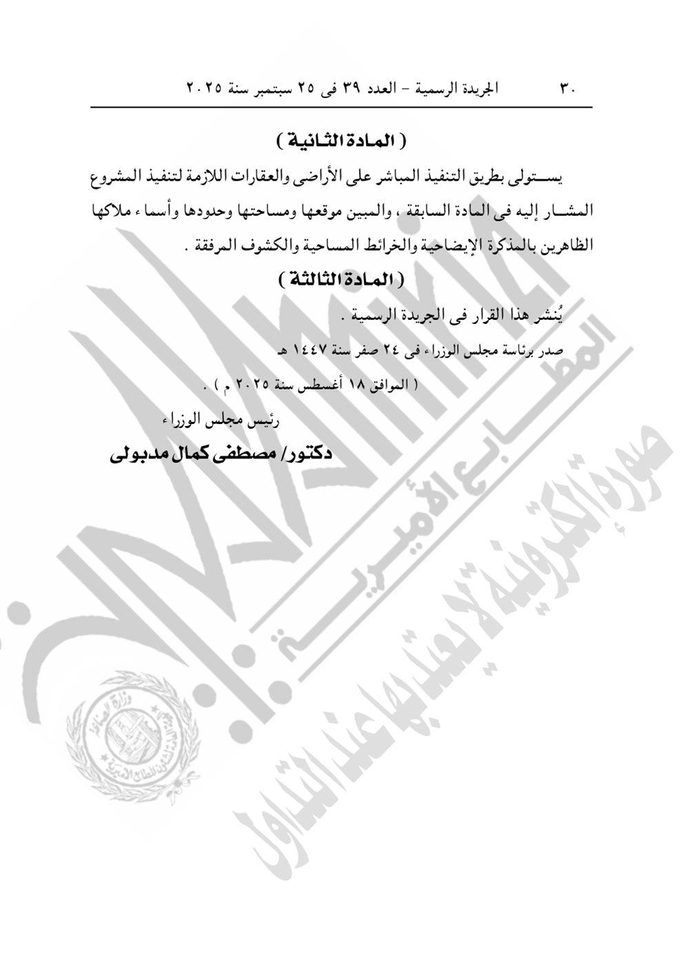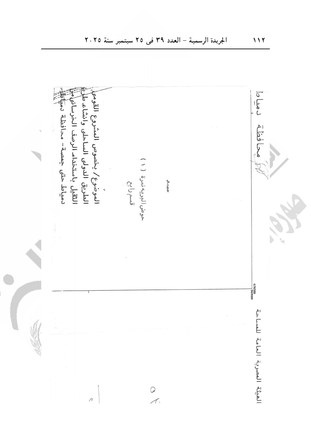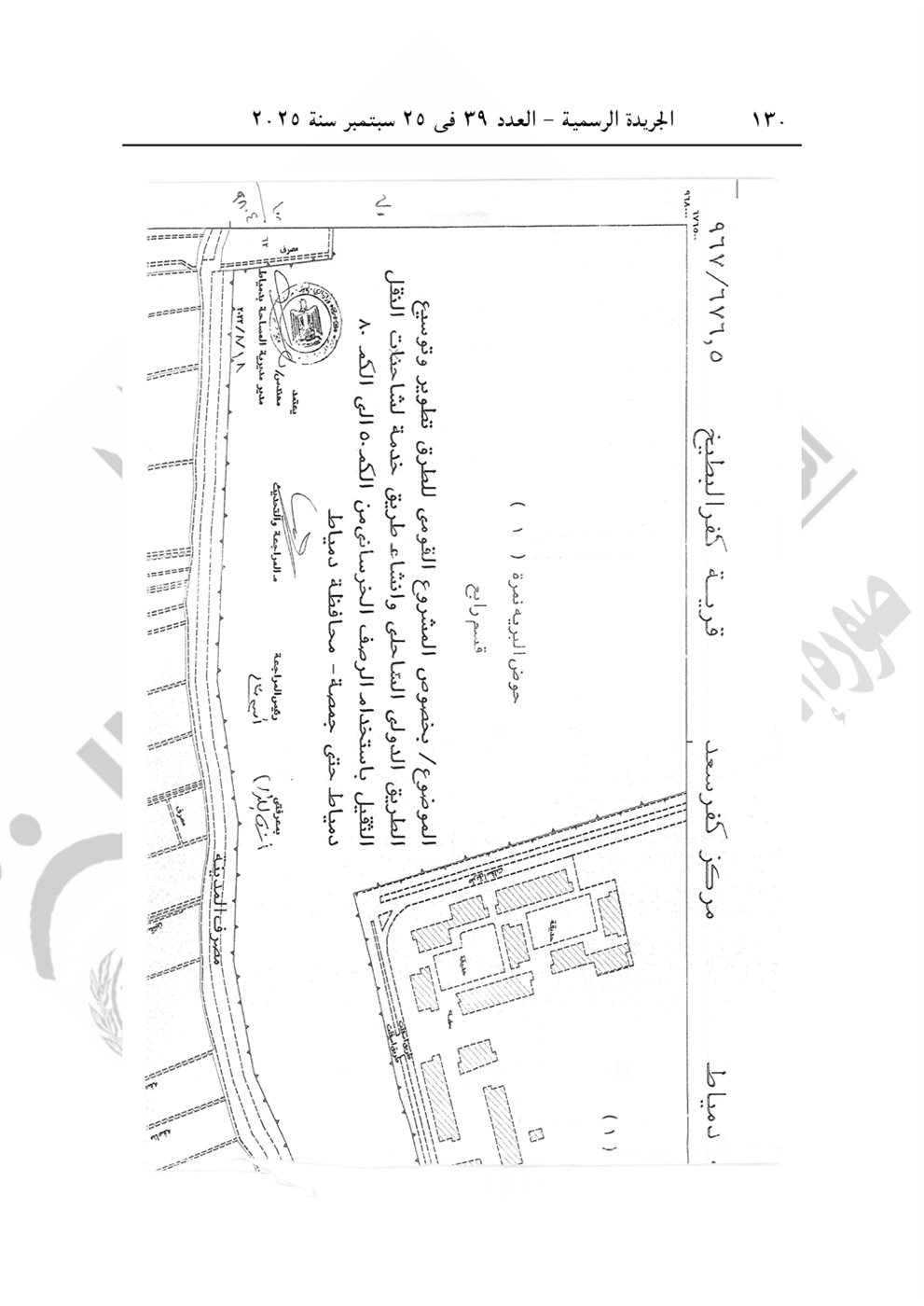 نشرت الجريدة الرسمية في عددها رقم 39، الصادر في 25 سبتمبر 2025، قرار رئيس الوزراء الدكتور مصطفى مدبولي رقم 2804 لسنة 2025، بشأن الاستيلاء بطريق التنفيذ المباشر على الأراضي والعقارات اللازمة لمشروع تطوير الطريق الدولي الساحلي بطول 40 كيلو في محافظتي دمياط والدقهلية.