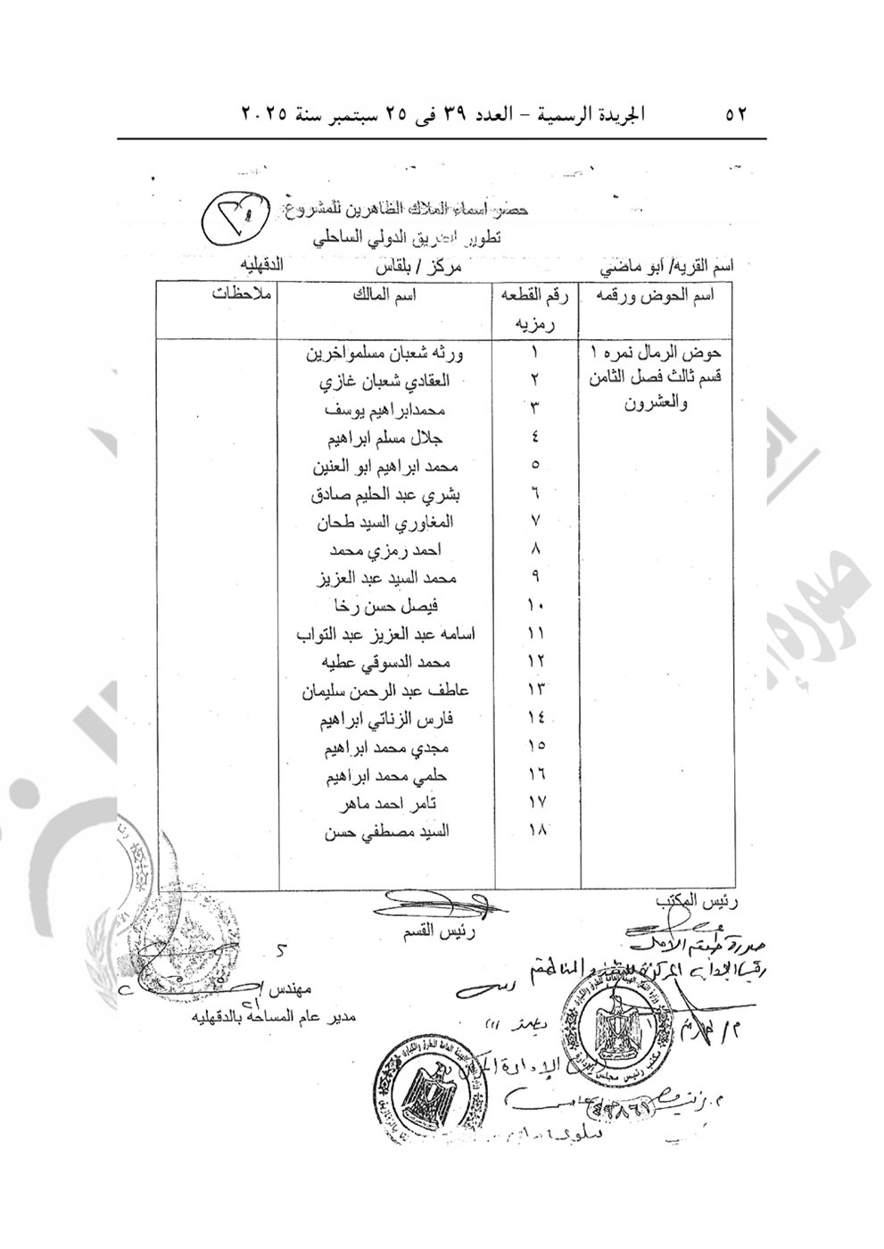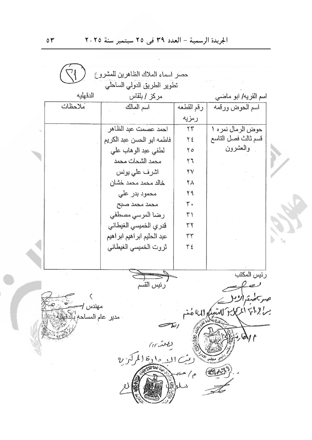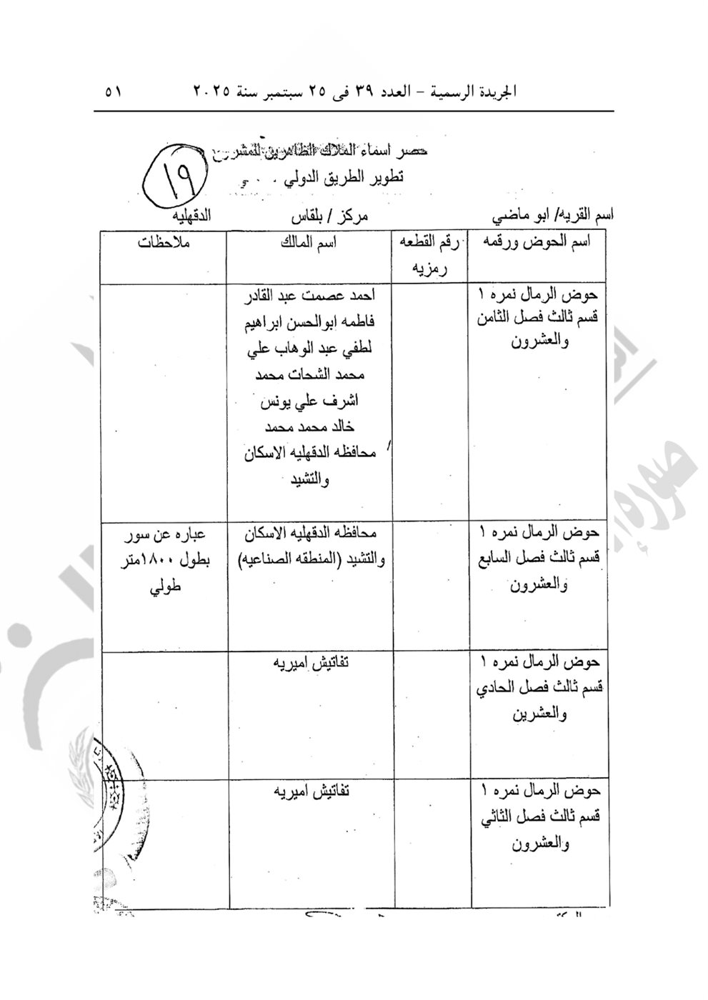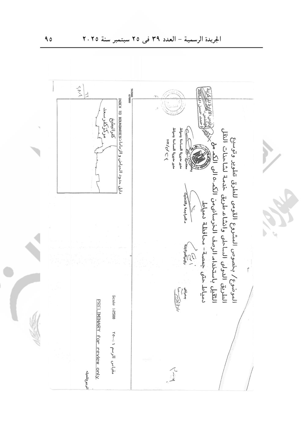 نشرت الجريدة الرسمية في عددها رقم 39، الصادر في 25 سبتمبر 2025، قرار رئيس الوزراء الدكتور مصطفى مدبولي رقم 2804 لسنة 2025، بشأن الاستيلاء بطريق التنفيذ المباشر على الأراضي والعقارات اللازمة لمشروع تطوير الطريق الدولي الساحلي بطول 40 كيلو في محافظتي دمياط والدقهلية.