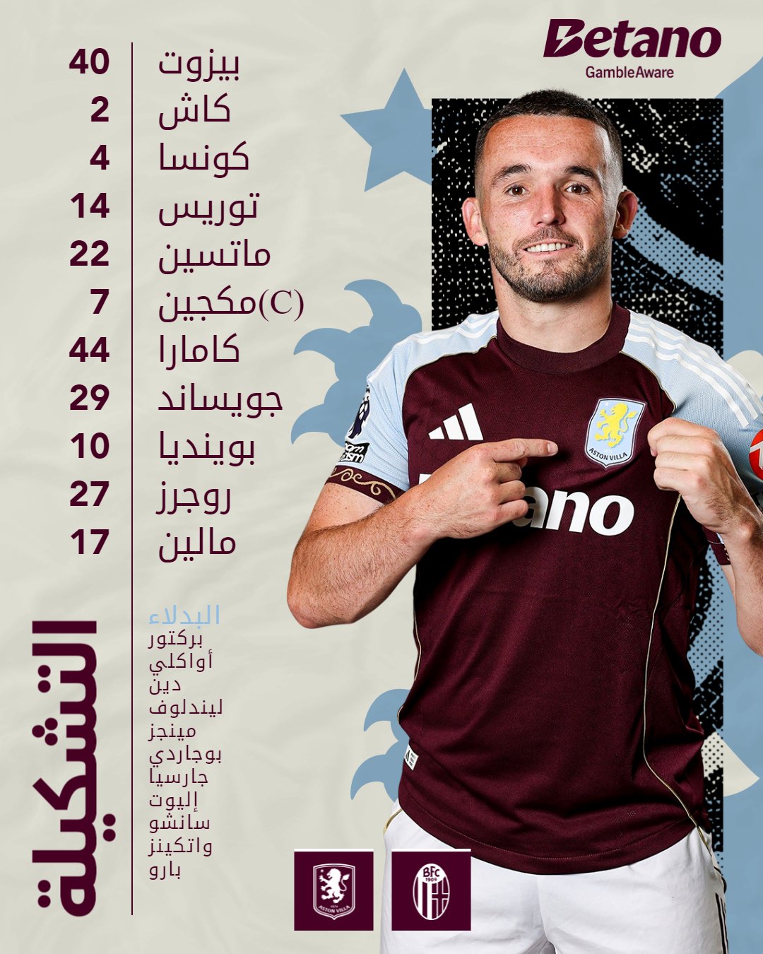 تشكيل مباراة أستون فيلا ضد بولونيا في الدوري الأوروبي