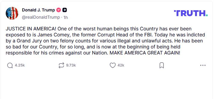 وفي حال إدانته، يواجه كومي عقوبة السجن لمدة تصل إلى خمس سنوات، وفق المدعية العامة الفدرالية ليندزي هاليجان التي عيّنها الرئيس الأمريكي دونالد ترامب في منصبها قبل أيام.