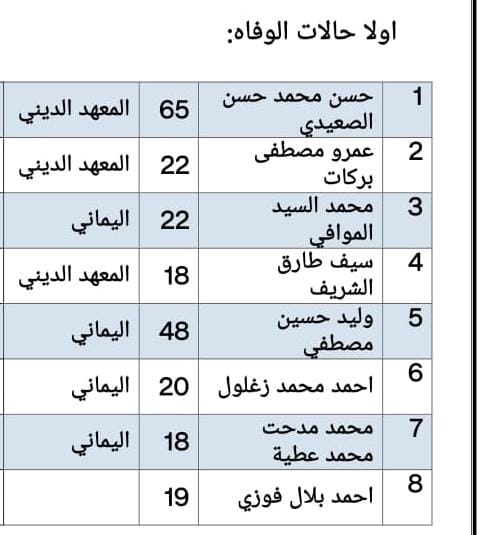 وجثتان مجهولتا الهوية والدسوقى البيومي سليمان وخميس جمعة شلبي ـ أمين شرطة، جاري التعرف على هويته وأنور عبد العزيز خورشيد طاهر.