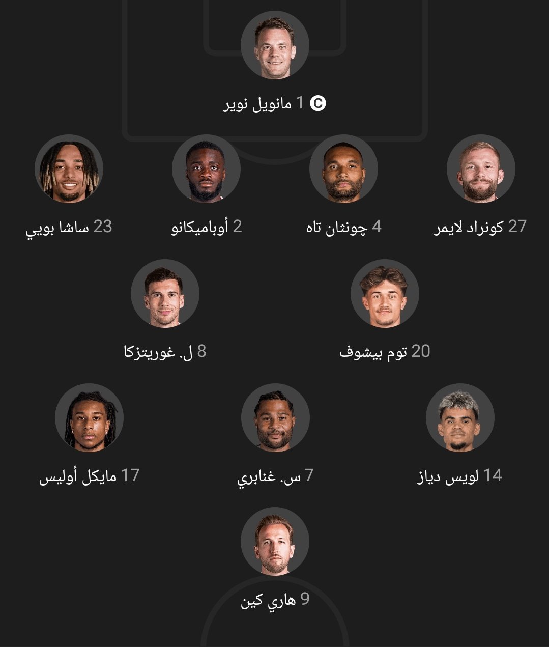 دخل فريق بايرن ميونخ مباراته أمام فيردر بريمن بتشكيل يضم كلا من: