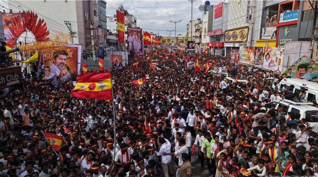 ذكرت صحيفة "هندوستان تايمز" أن قسما كبيرا من الحشد الذي أراد إلقاء نظرة خاطفة على فيجاي، اندفع نحو الحواجز التي تحوط المسرح، مما أدى إلى تدافع مميت.