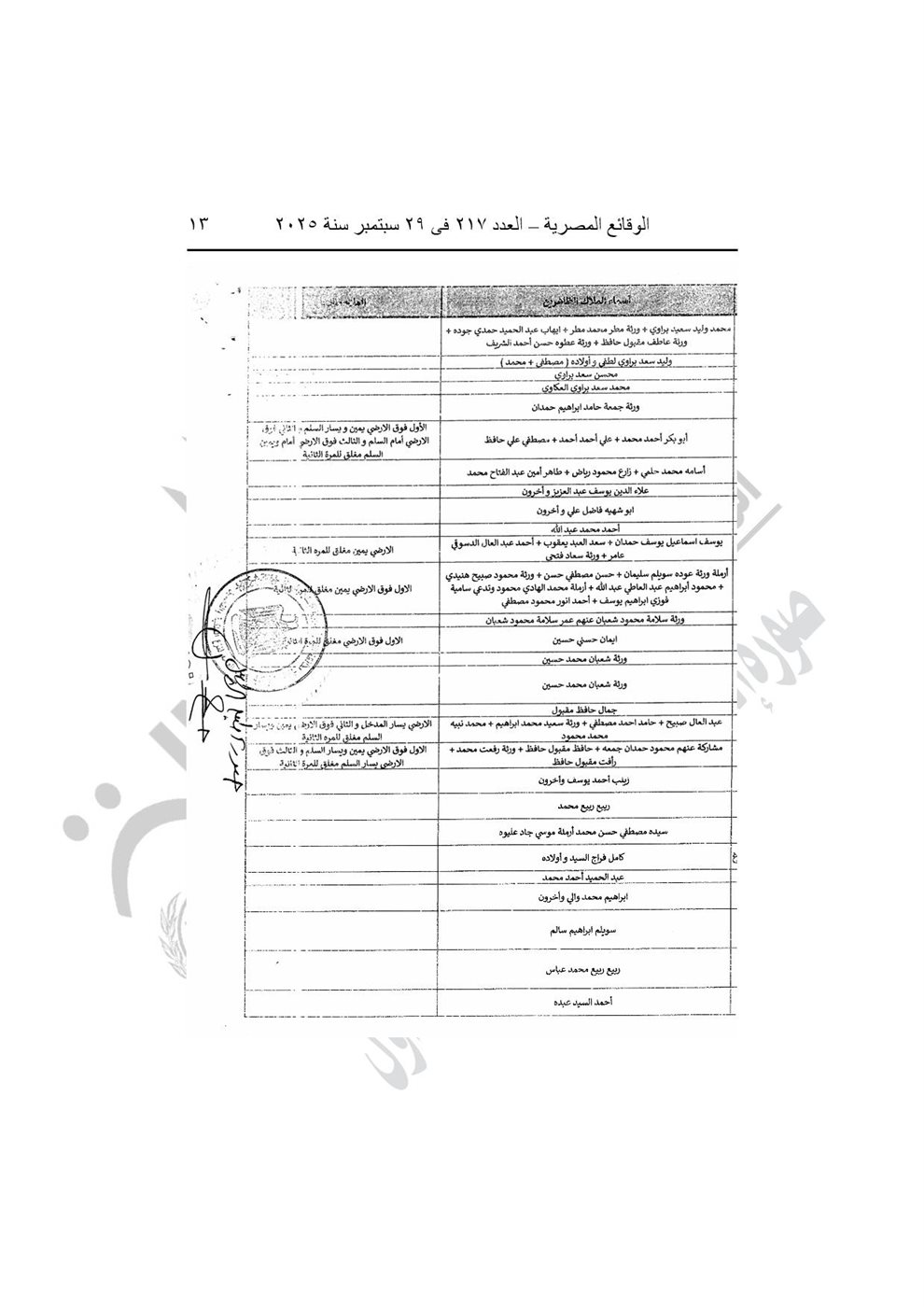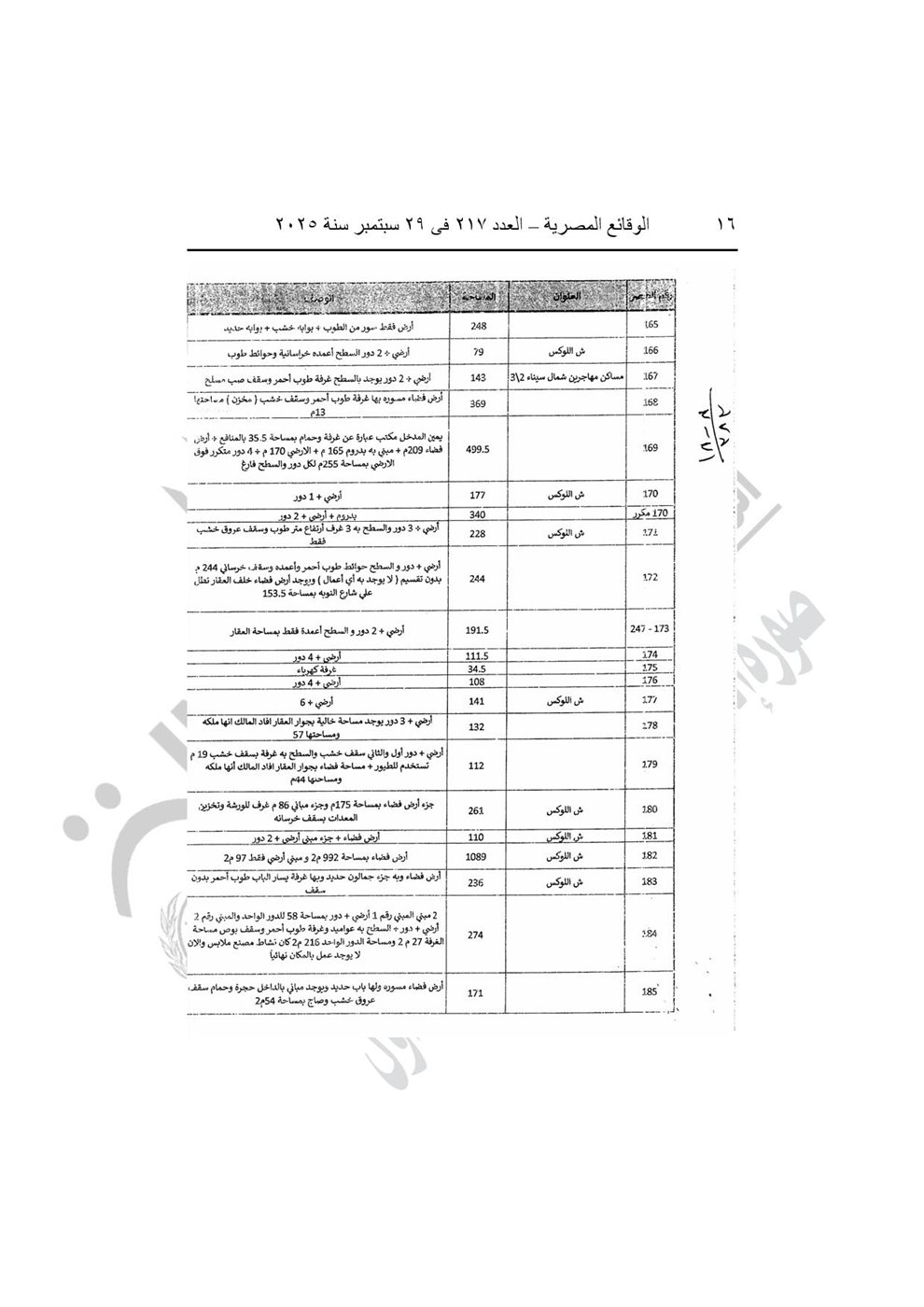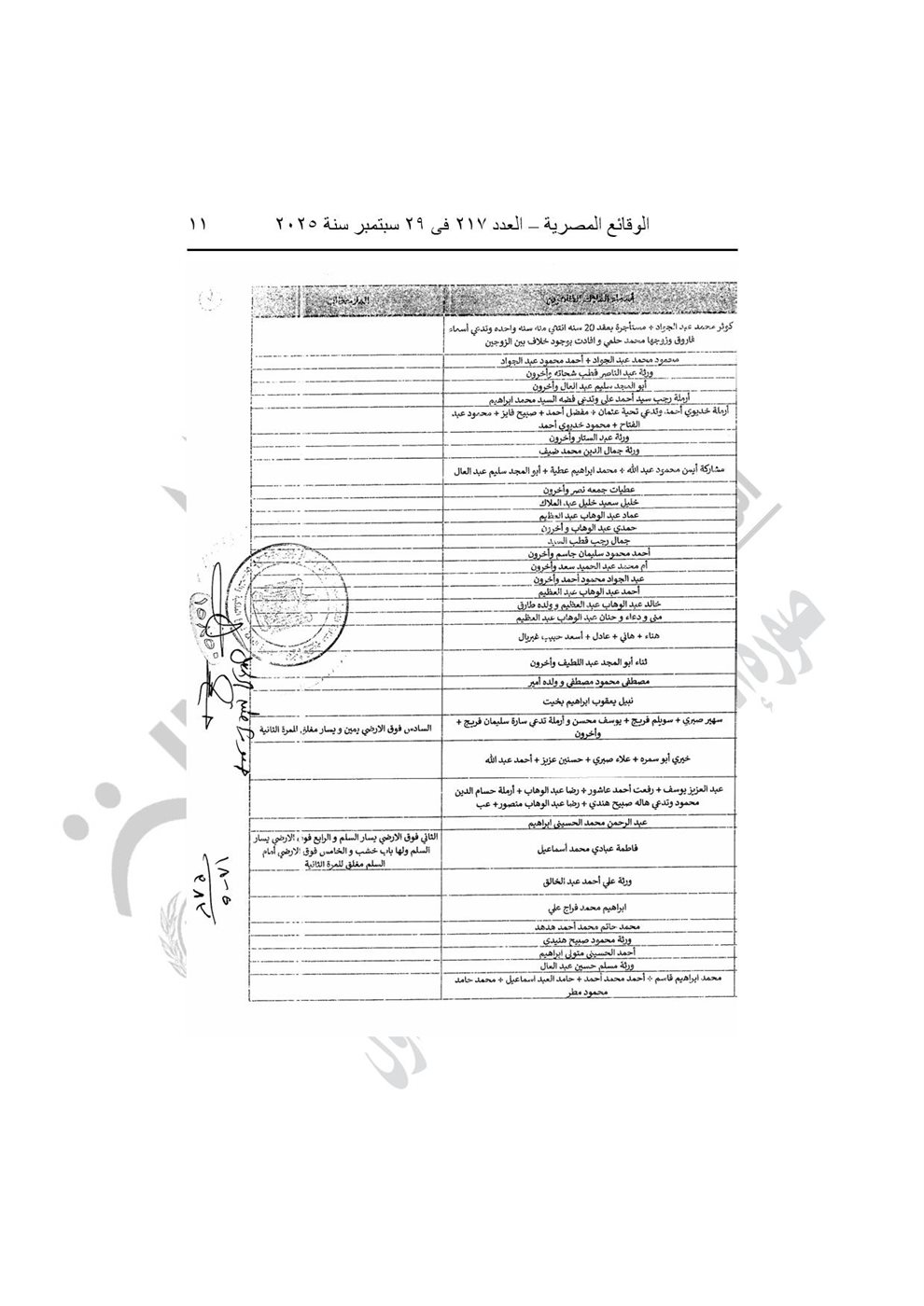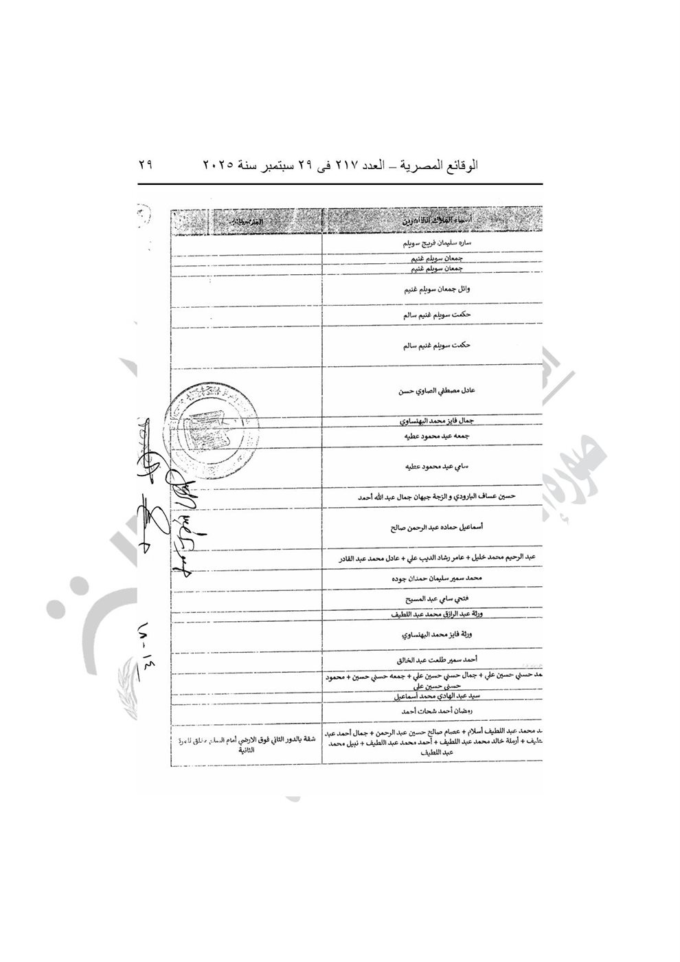 نشرت جريدة الوقائع المصرية في عددها رقم 217، الصادر في 29 سبتمبر 2025، قرار وزارة التنمية المحلية رقم 383 لسنة 2025، بشأن نزع ملكية العقارات والأراضى الصادر بشأنها قرار رئيس مجلس الوزراء رقـم 4683 لسنة 2023، موضحة كشوف حصر أسماء الملاك الظاهرين.